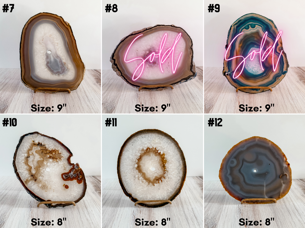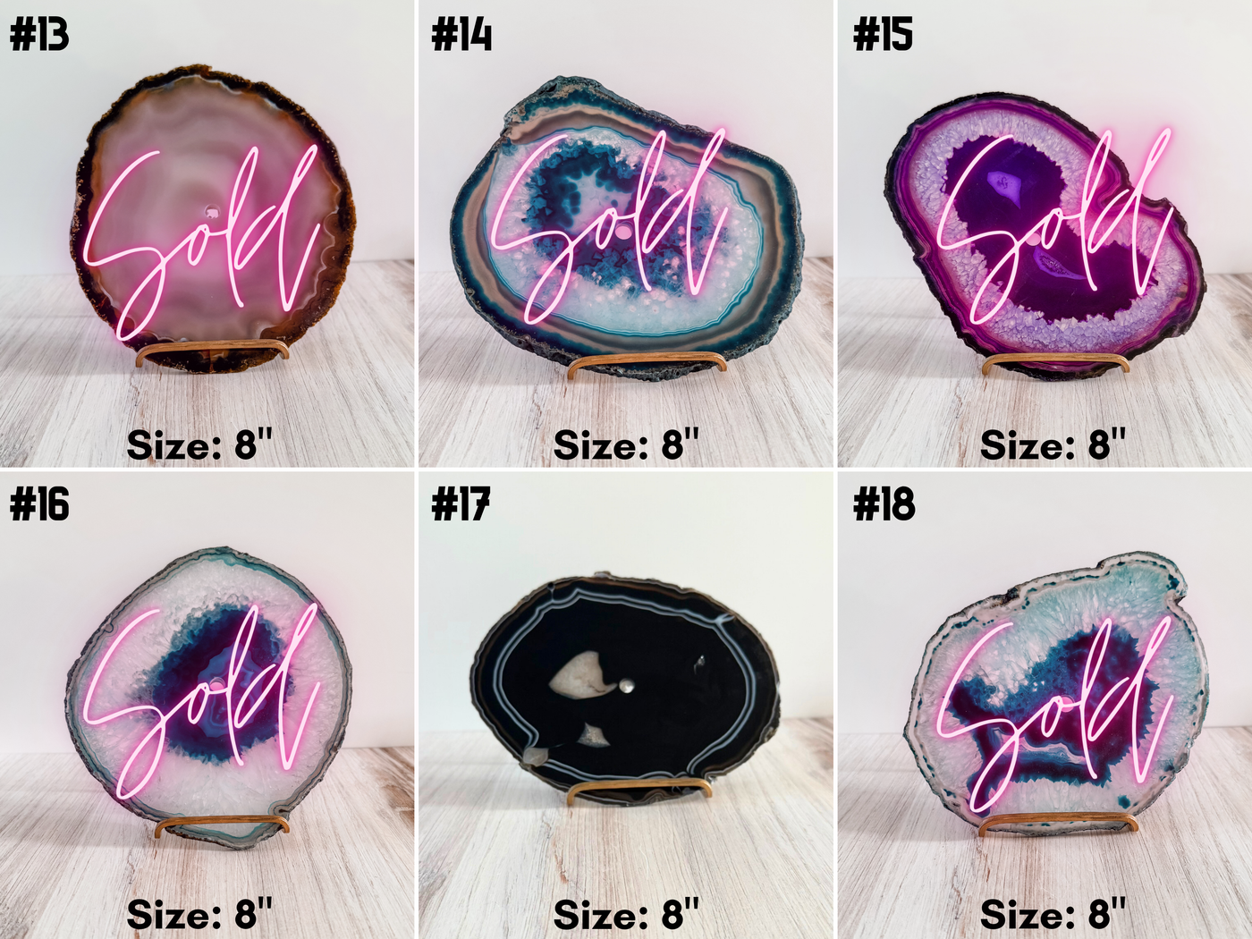 - Dimensions: Agate slabs vary in size; approximate dimensions range from 6 to 13 inches in size, see photos for sizing info.
