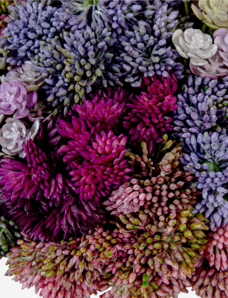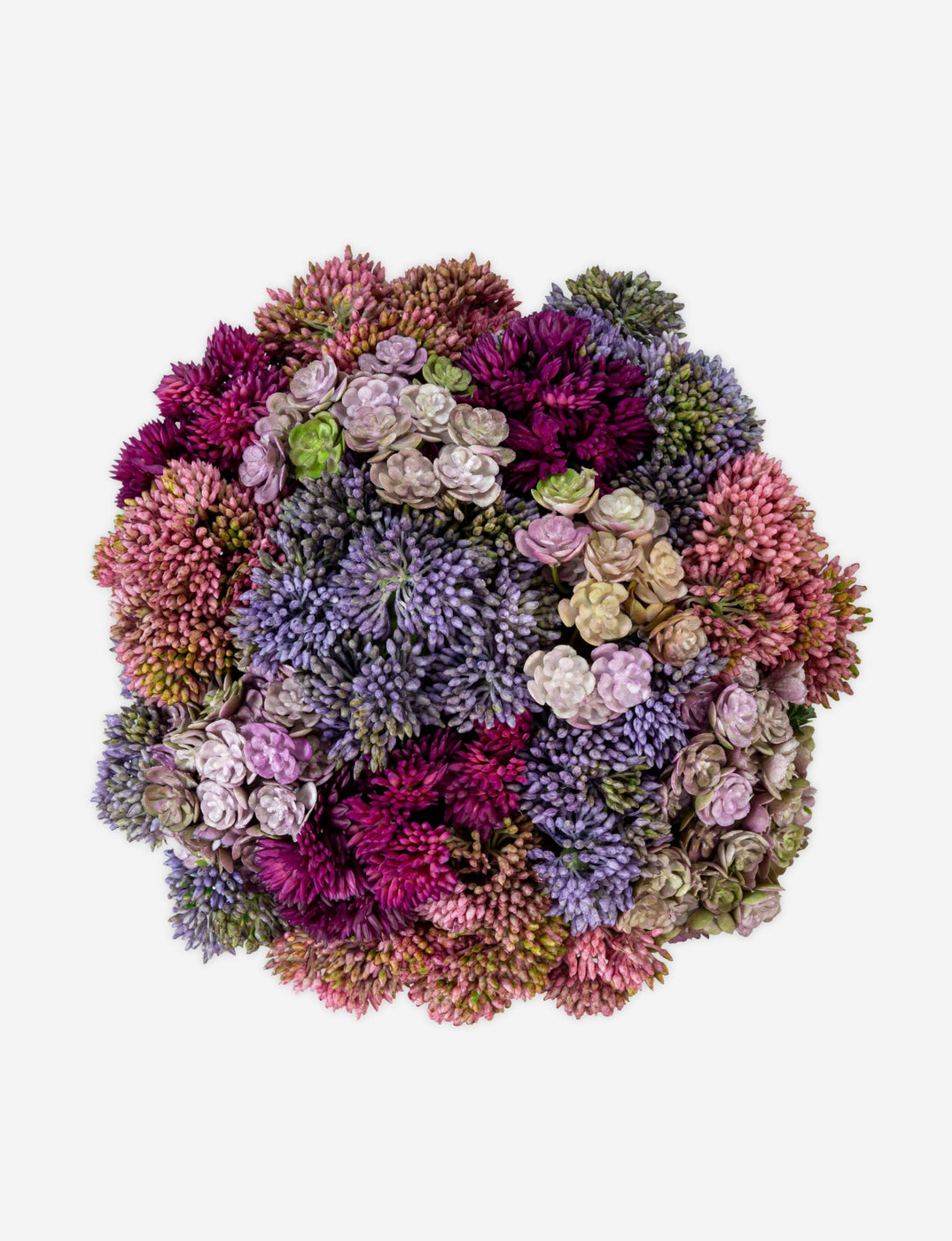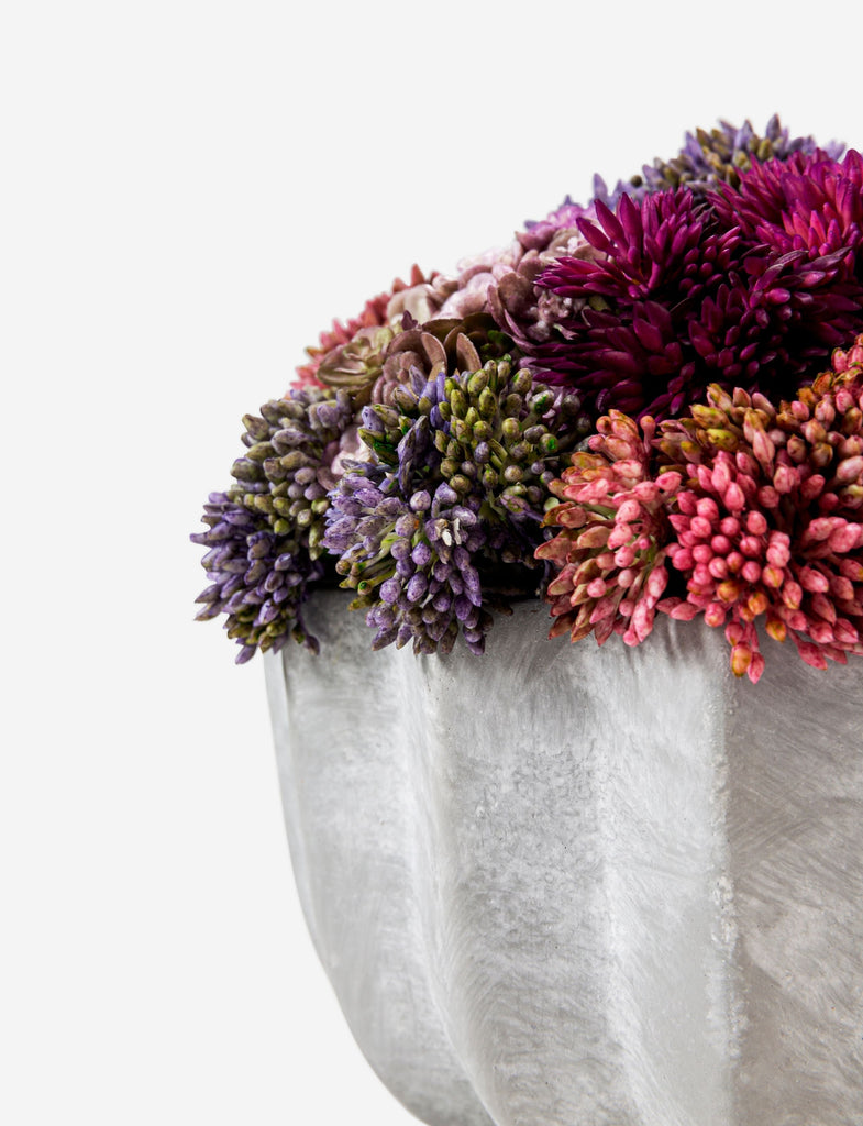 Experience the vibrant beauty of the Alice Sedum Arrangement, showcasing colorful faux sedum flowers nestled in a pleated cement vase. Perfect for adding a burst of color to any tabletop, this exquisite arrangement is an ideal gift for Mother's Day or any occasion, radiating joy and elegance in any space.