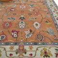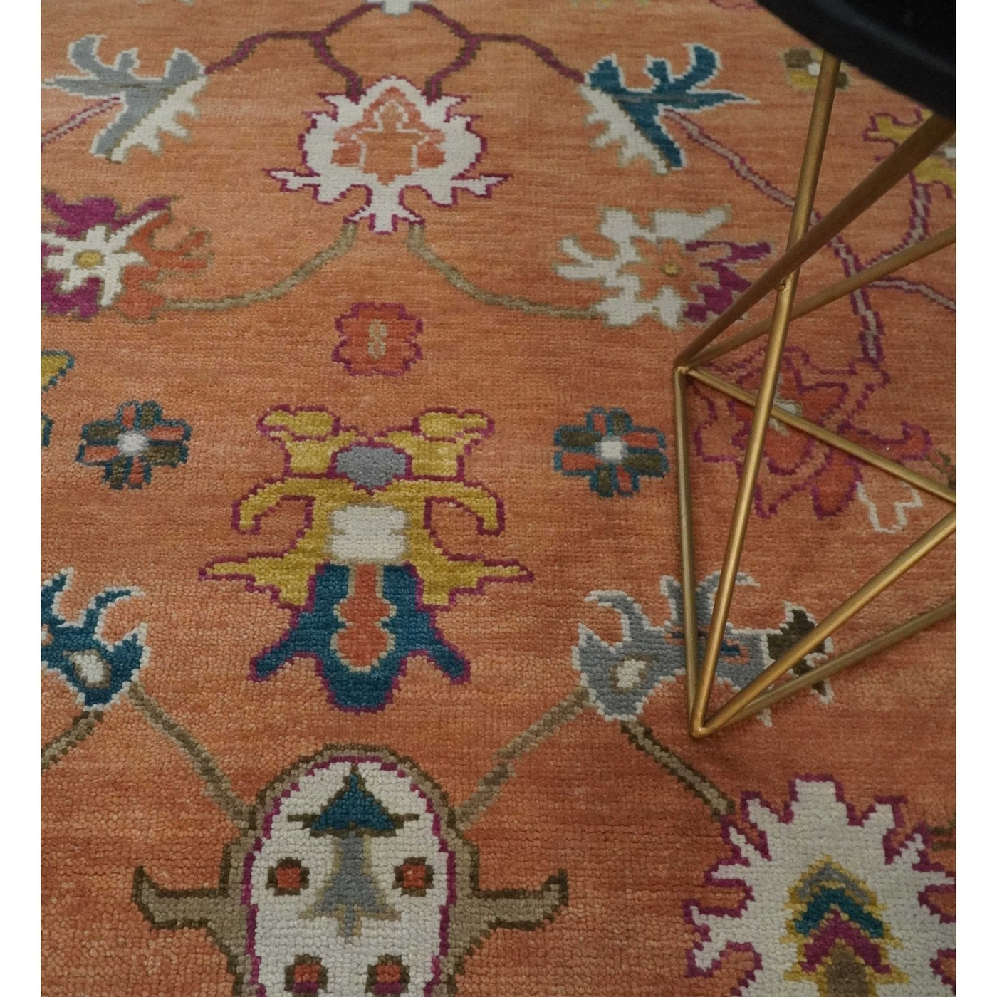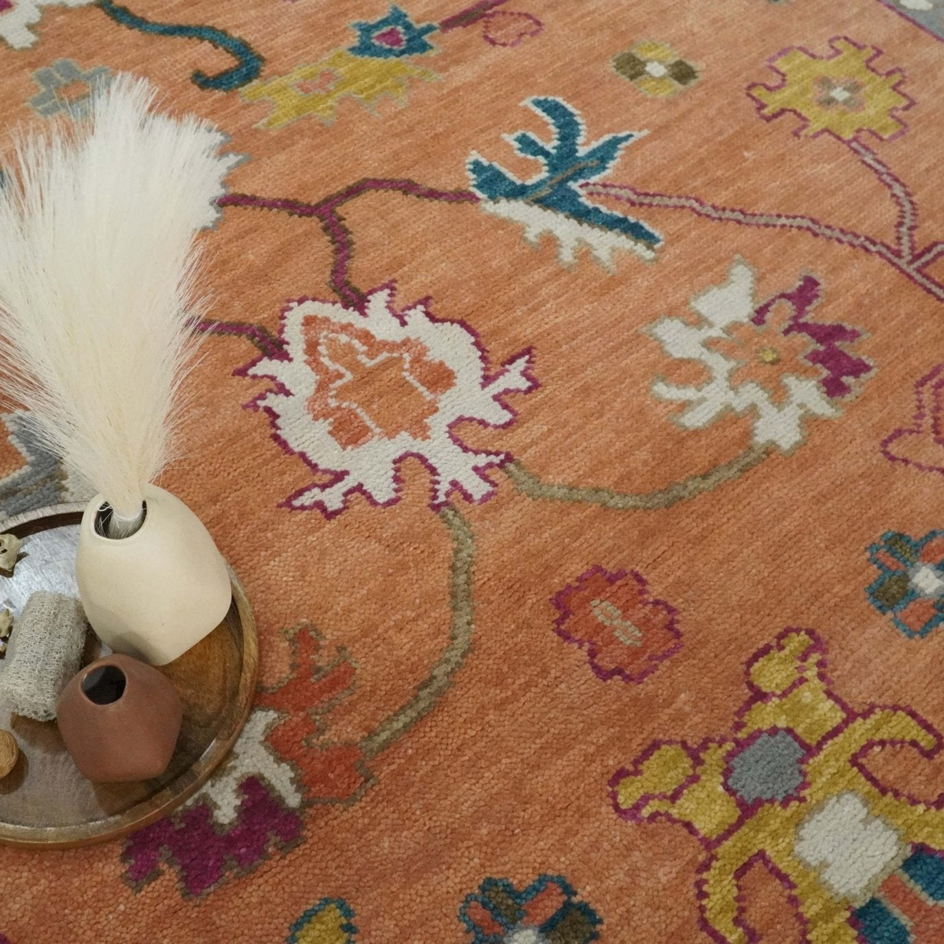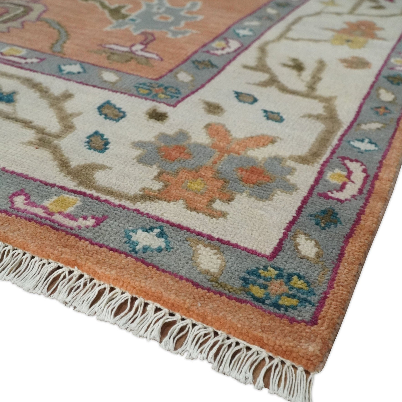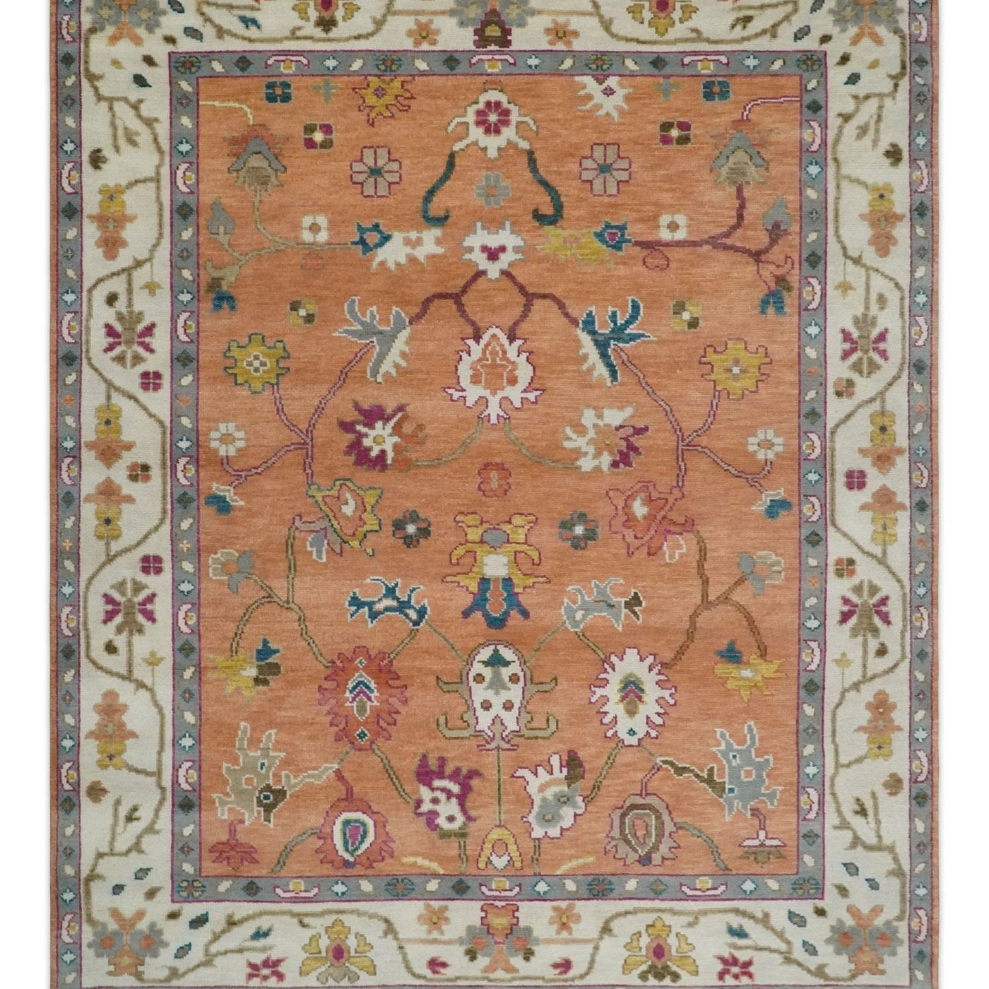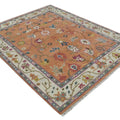 Antique Floral Peach and Ivory Hand knotted Traditional Oushak 8x10 wool Area Rug