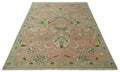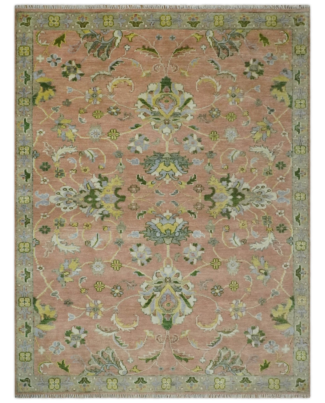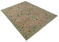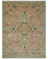 Antique Floral Peach, Green, Mustard and Ivory Hand Knotted 9x12 wool area Rug