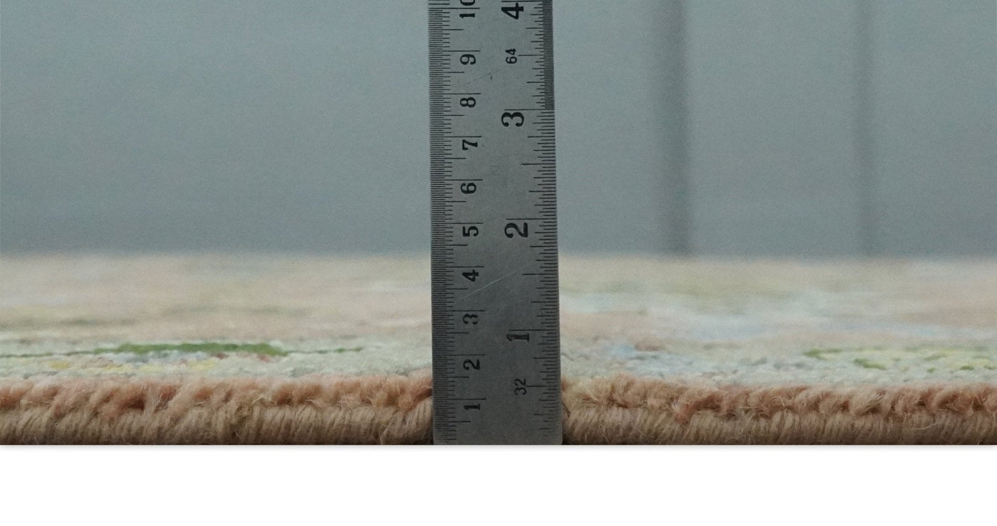 Expertly crafted with an antique floral design, this hand-knotted wool rug in shades of peach, green, mustard, and ivory makes a beautiful addition to any room. Measuring 9x12, it adds warmth and elegance to your home décor.