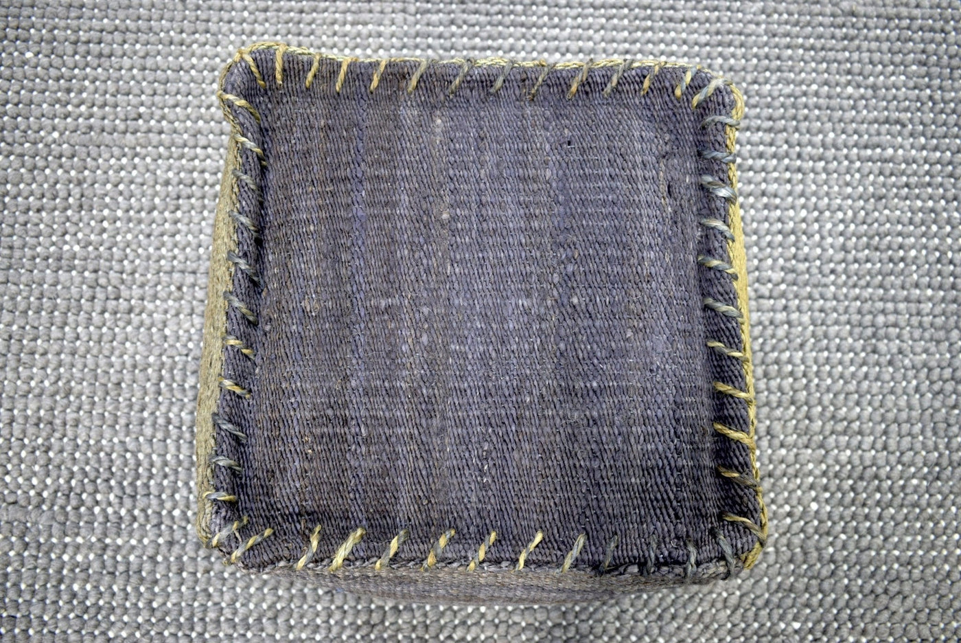 - Blue and Green Jute Hand Woven Square Pouf, Footstool, Ottoman, Side table, Soft Seat, Foot Rest, Boho Decor | TRD103