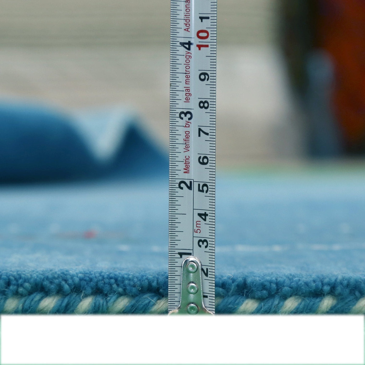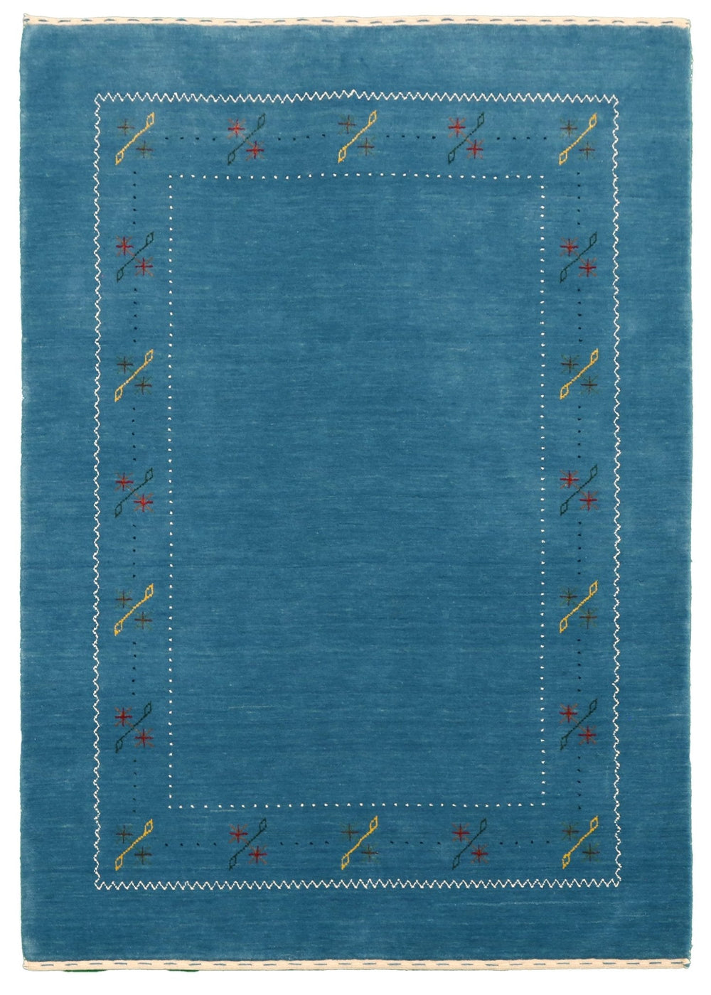 Blue And White Gabbeh Border Design Hand Loomed Wool Area Rug