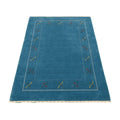 Expertly hand-loomed wool area rug showcasing an elegant blue and white tribal border design. Ready to ship immediately, this premium floor covering brings authentic artisanal craftsmanship and sophisticated pattern work to elevate your interior space with timeless appeal.