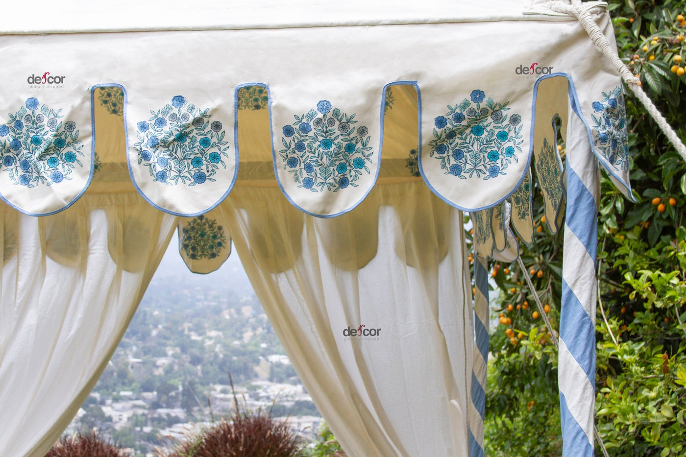 - *Condition: Very Good. This exquisite De-Cor exclusive canopy tent is thoughtfully crafted by our skilled artisans in India. It's important to understand that hand block printing is a labor-intensive manual technique. As a result, there might be slight color variations and printing imperfections, which are inherent characteristics of its artisanal handmade nature.