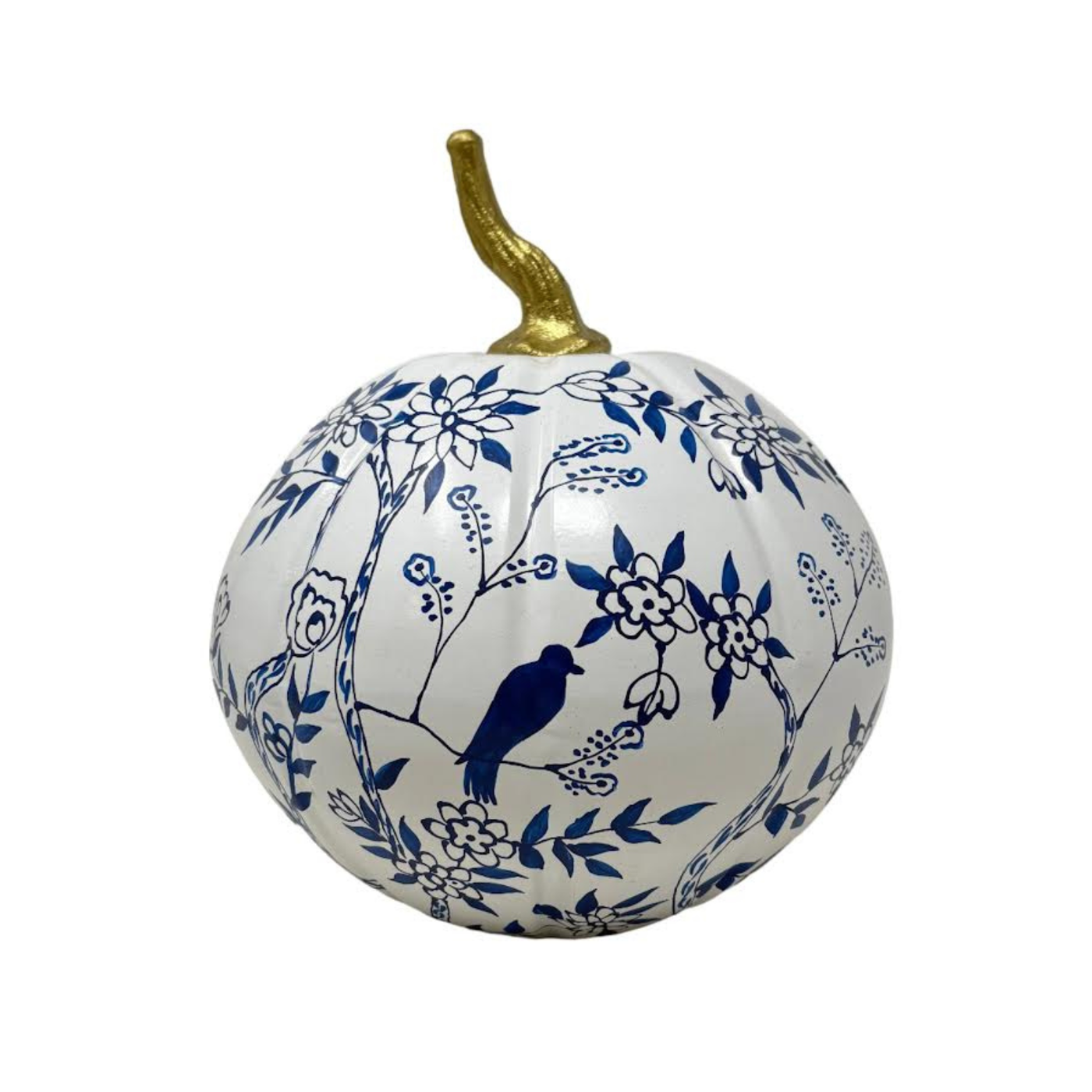 Blue & White Bird & Vine Pumpkin