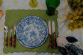 Part of our Shimla Social Collection, the Bombay Blue Dinner Plate captures the whimsy of a dense jungle, intricately painted in a safari green with branching tendrils, lush leaves, and vibrant blooms. The enchanting foliage is displayed around the plate's border, creating a decorative frame and white center. If you look closely enough, you may even be able to spot a monkey hanging off a bough. Can be matched with Shimla Social coordinating pieces to create a complete place setting.