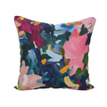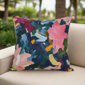 This abstract, painterly floral adds artistic tension to crisp stripes and rich solids. Style it as the drama piece on neutral outdoor sofas or vintage iron seating. This pattern is based on an original piece by SmithHönig, inspired by a modern Bloomsbury aesthetic, and printed onto water-, mold-, and mildew-resistant fabric.