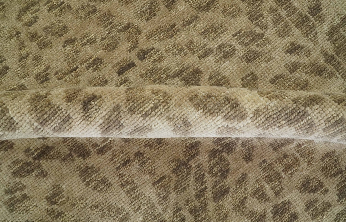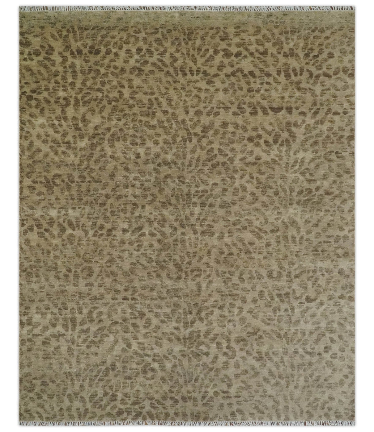 Camel and Taupe Modern leopard Design 8x10 Hand knotted wool area rug