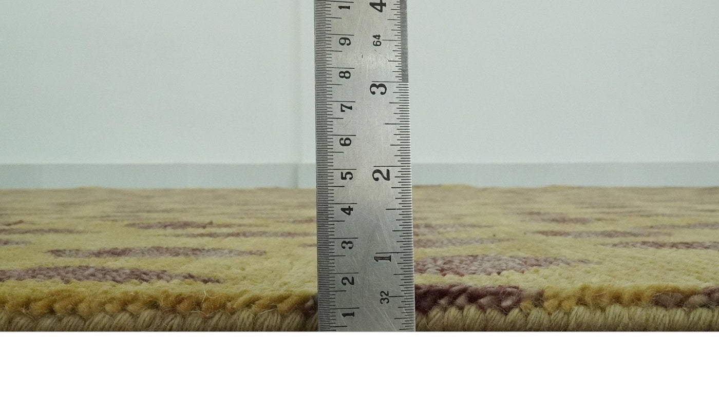 This Chaia Dotted rug is a luxurious, hand-knotted wool area rug 8x10 to add an elegant touch to any room. The golden-brown and purple dot pattern brings a unique and sophisticated look, while the high-quality wool material offers durability and comfort. A perfect addition to elevate any space with style and functionality.