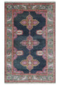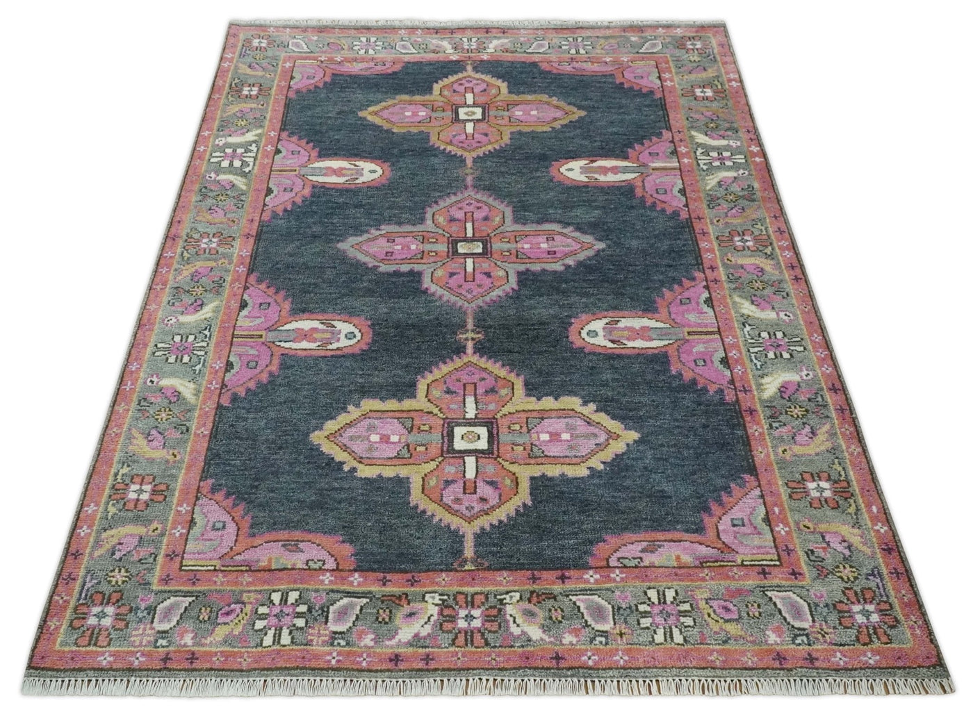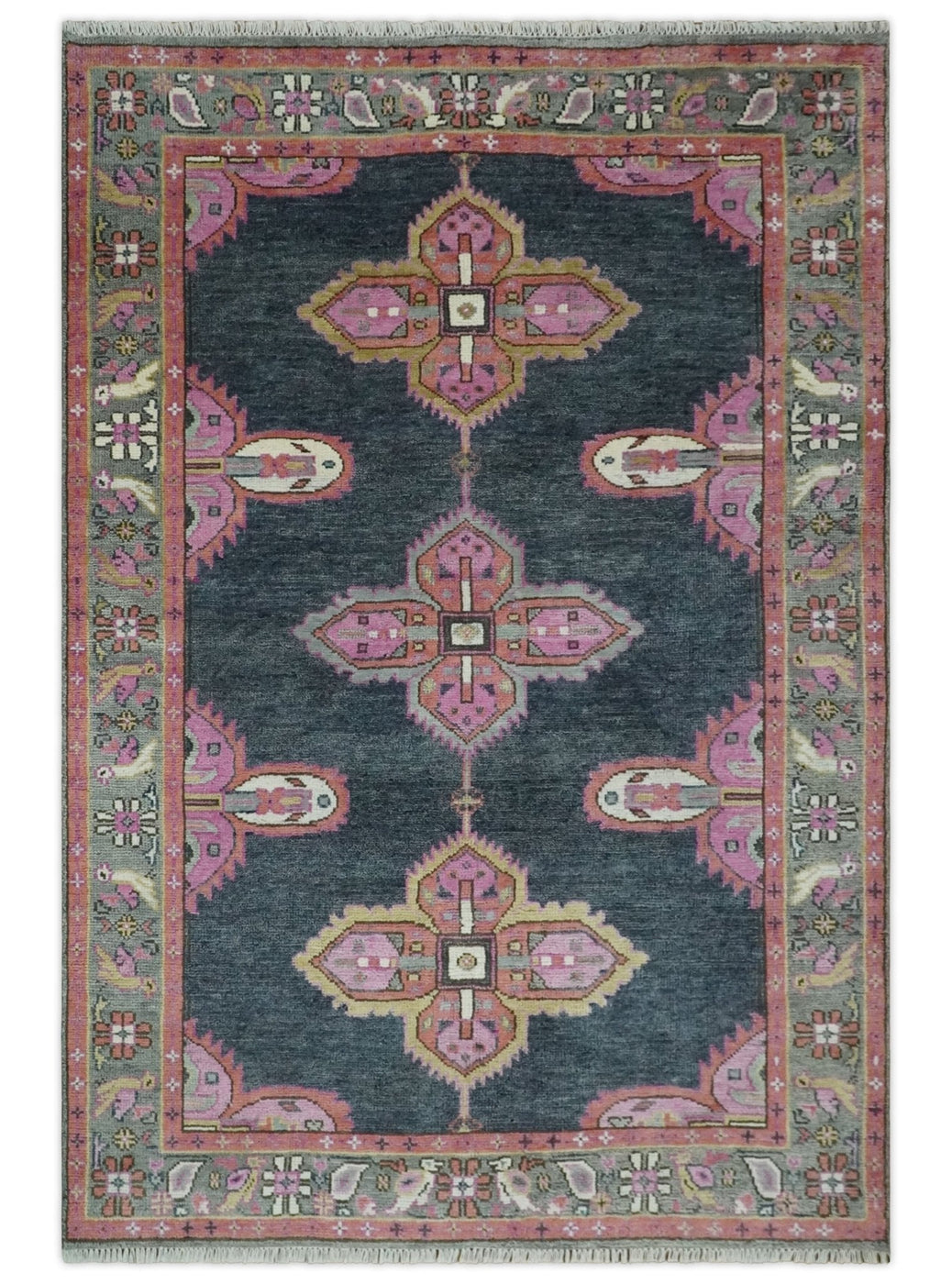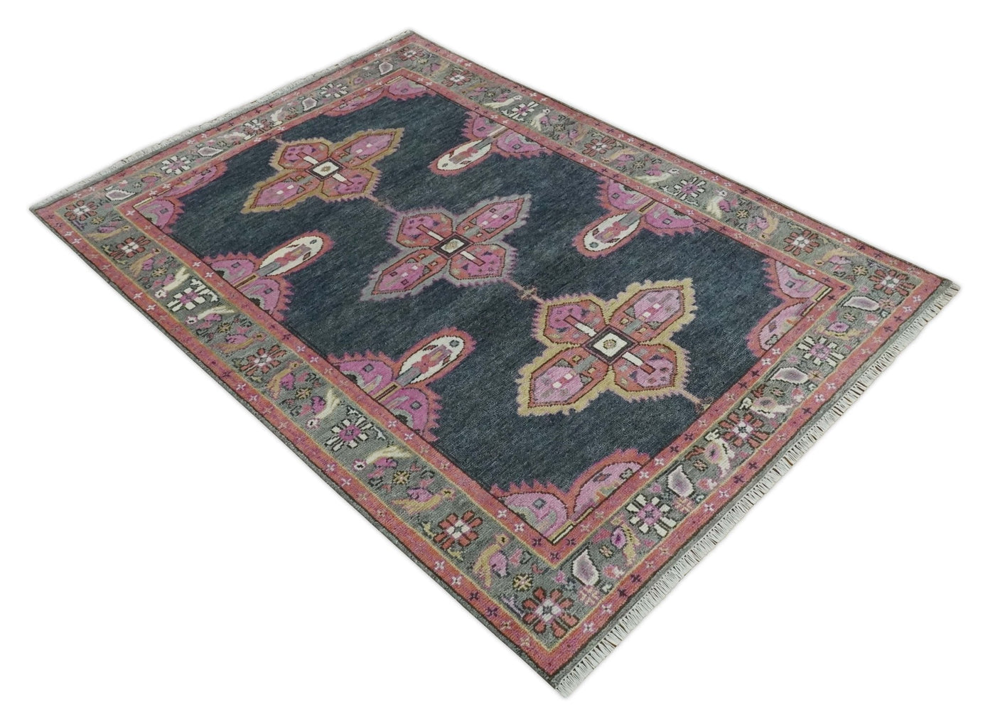 Charcoal, Gray and Pink Traditional Hand Knotted 5x8 and 6x9 Wool Area Rug