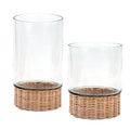 CG Hunter Handcrafted Clear Glass and Rattan Candleholder