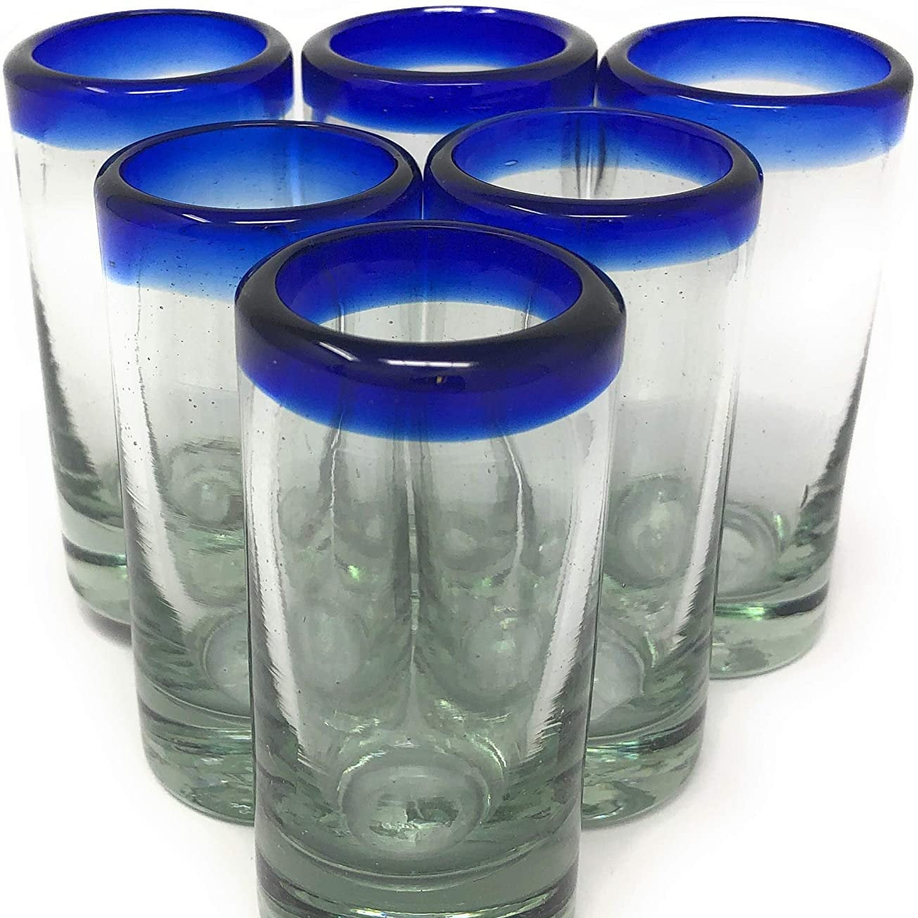 Cobalt Blue Rim Tequila Shot Glasses - Set of 6 (2 oz each)
