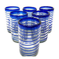 This traditional set of 6 cobalt spiral blown glasses is perfect for your next fiesta! Use them to serve water, juice, soda or alcohol. The set adds a great sense of elegance to the dining room that will be enjoyed by everyone. • Each blown glass may vary slightly in size and show tiny bubbles within the glass that develop from the blowing process. • Lead-free, made from sustainable recycled glass. • Handwashing recommended, but dishwasher safe on the top rack. • Exceptional artisan quality, thick and sturdy glass. • Proudly hand made in Mexico.