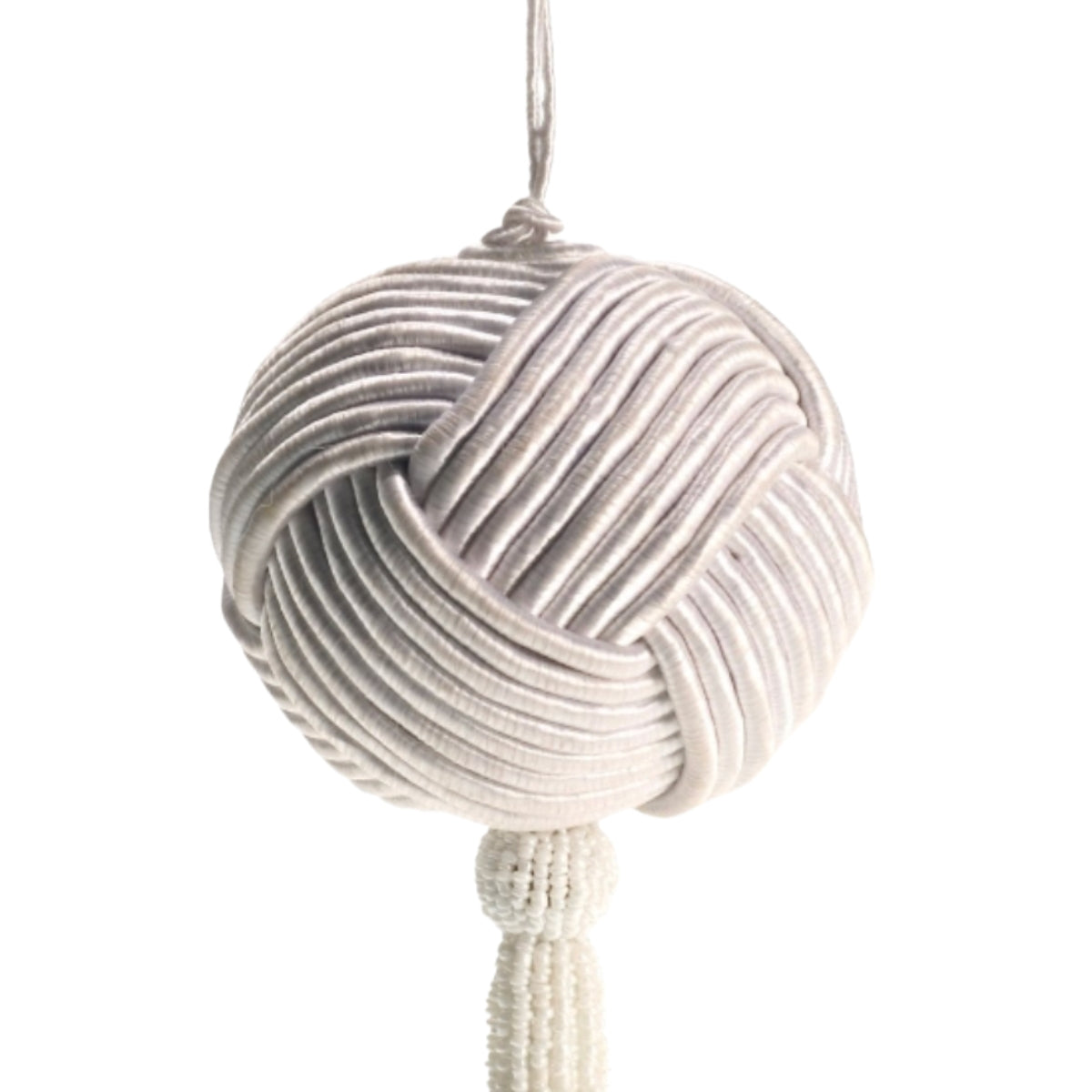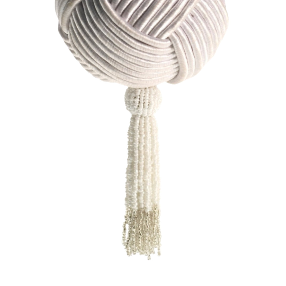 Cotton and Silk Corded Ball Hand Beaded Tassel- White Arcadia Home