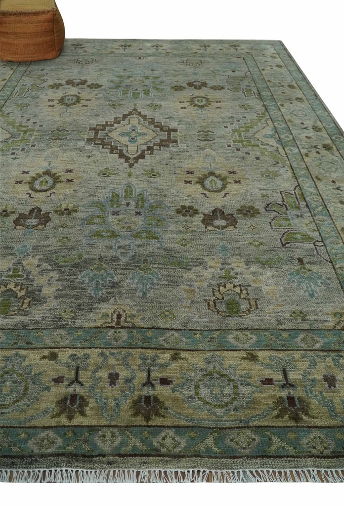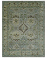 - Custom Made Antique Style Green and Silver Hand knotted Traditional Oriental Oushak wool Area Rug