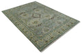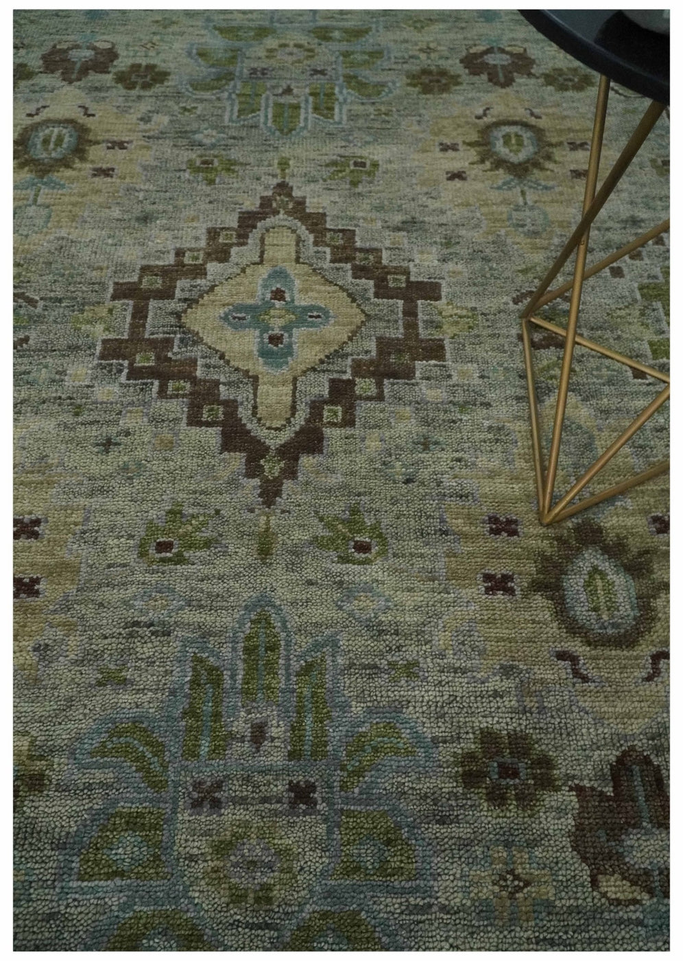 Custom Made Antique Style Green and Silver Hand knotted Traditional Oriental Oushak wool Area Rug