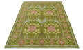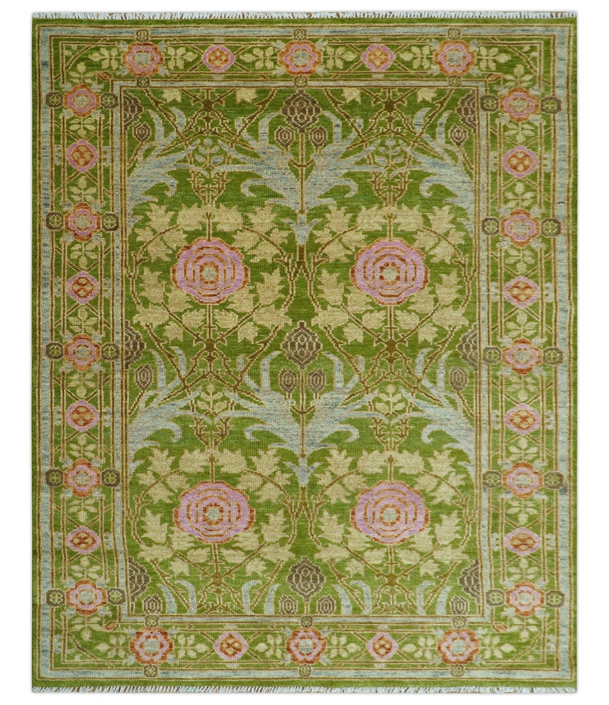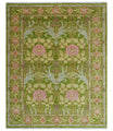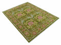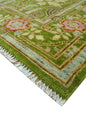 Custom Made Green And Pink Traditional Donegal Design Hand Knotted wool area rug