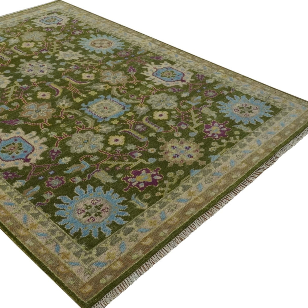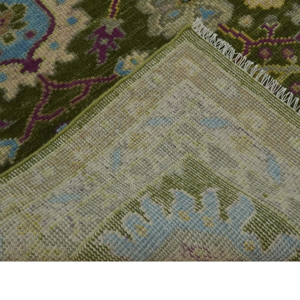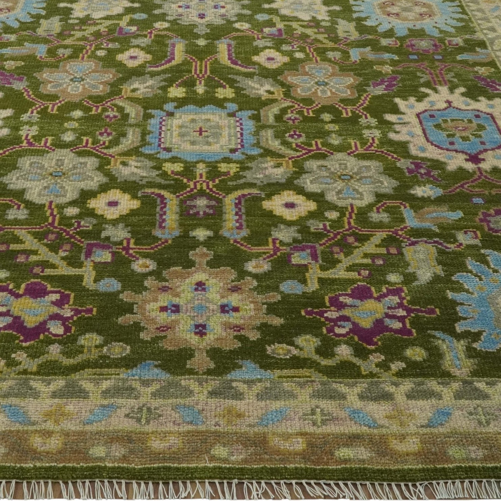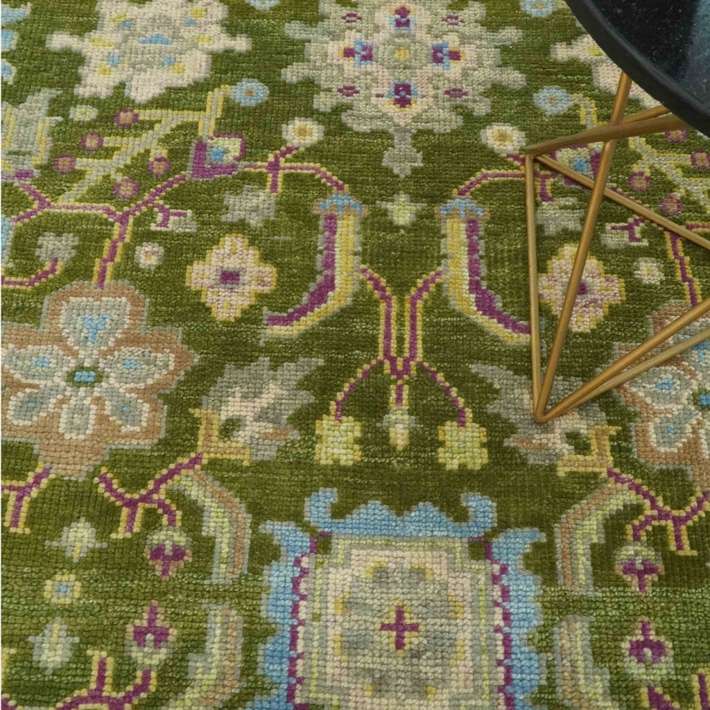 Custom Made Green, Beige and Purple Hand Knotted Traditional Oushak wool area rug