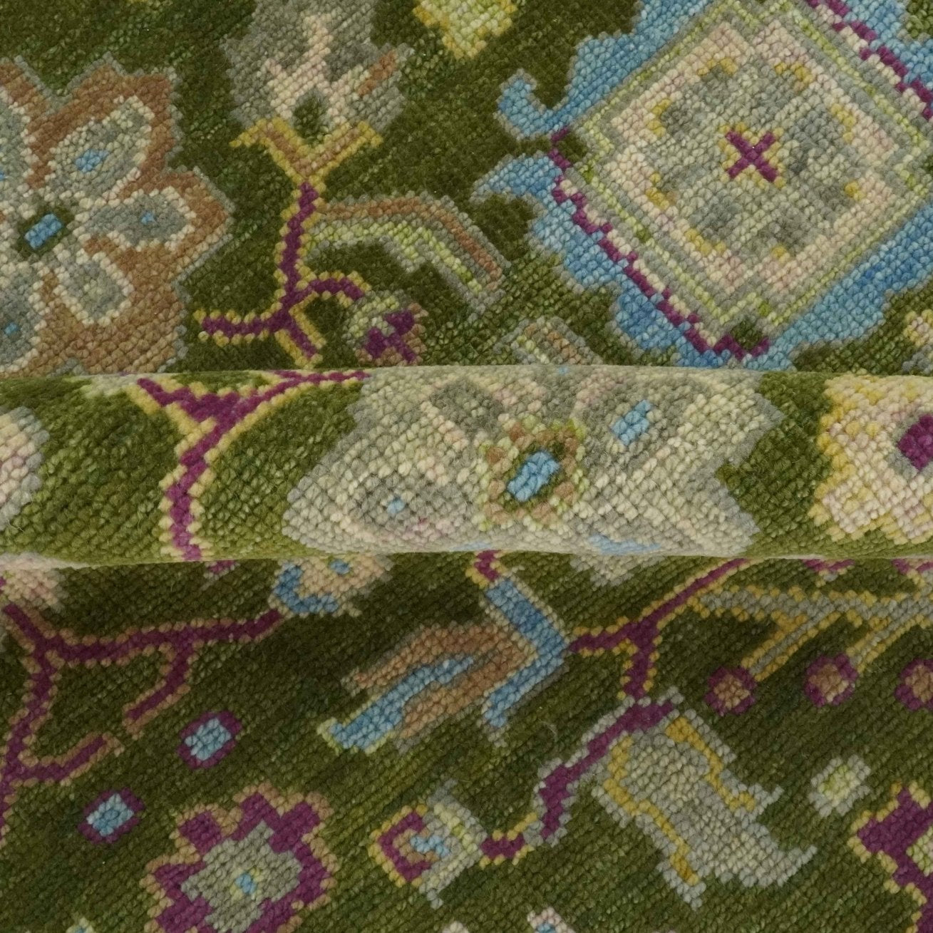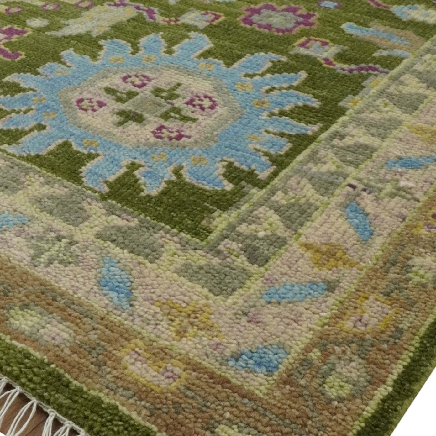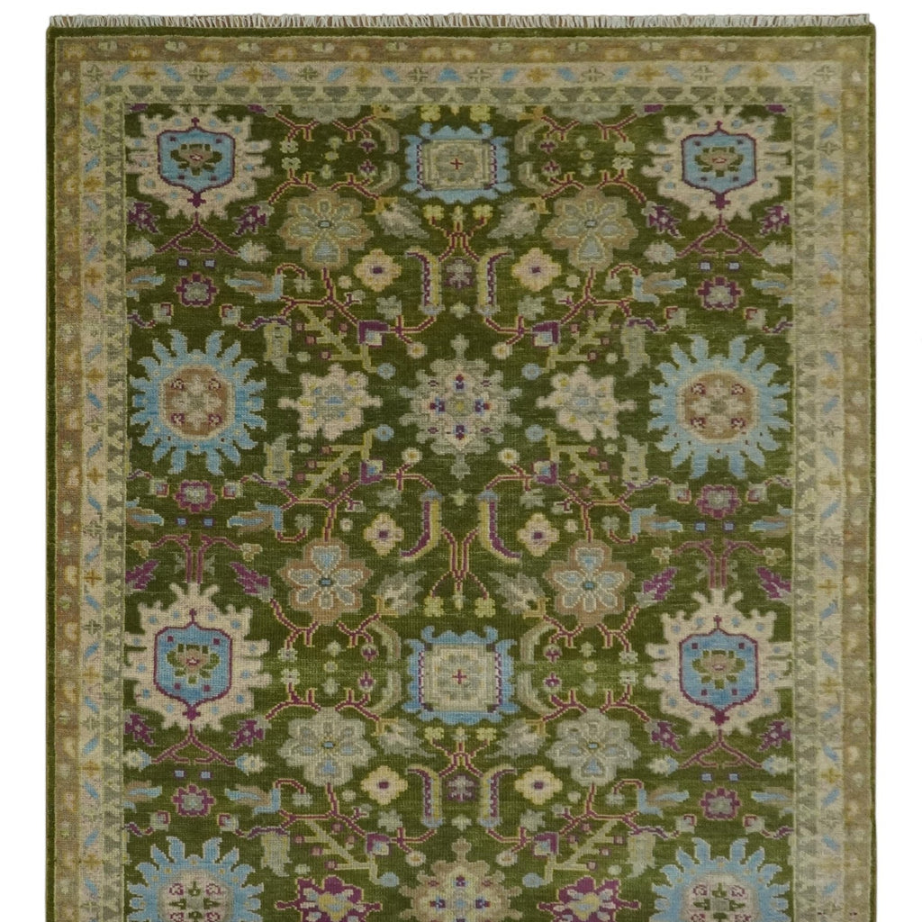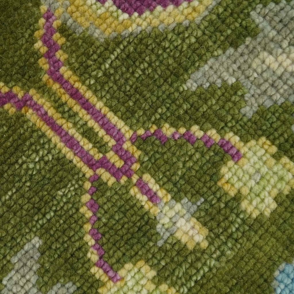 Custom Made Green, Beige and Purple Hand Knotted Traditional Oushak wool area rug