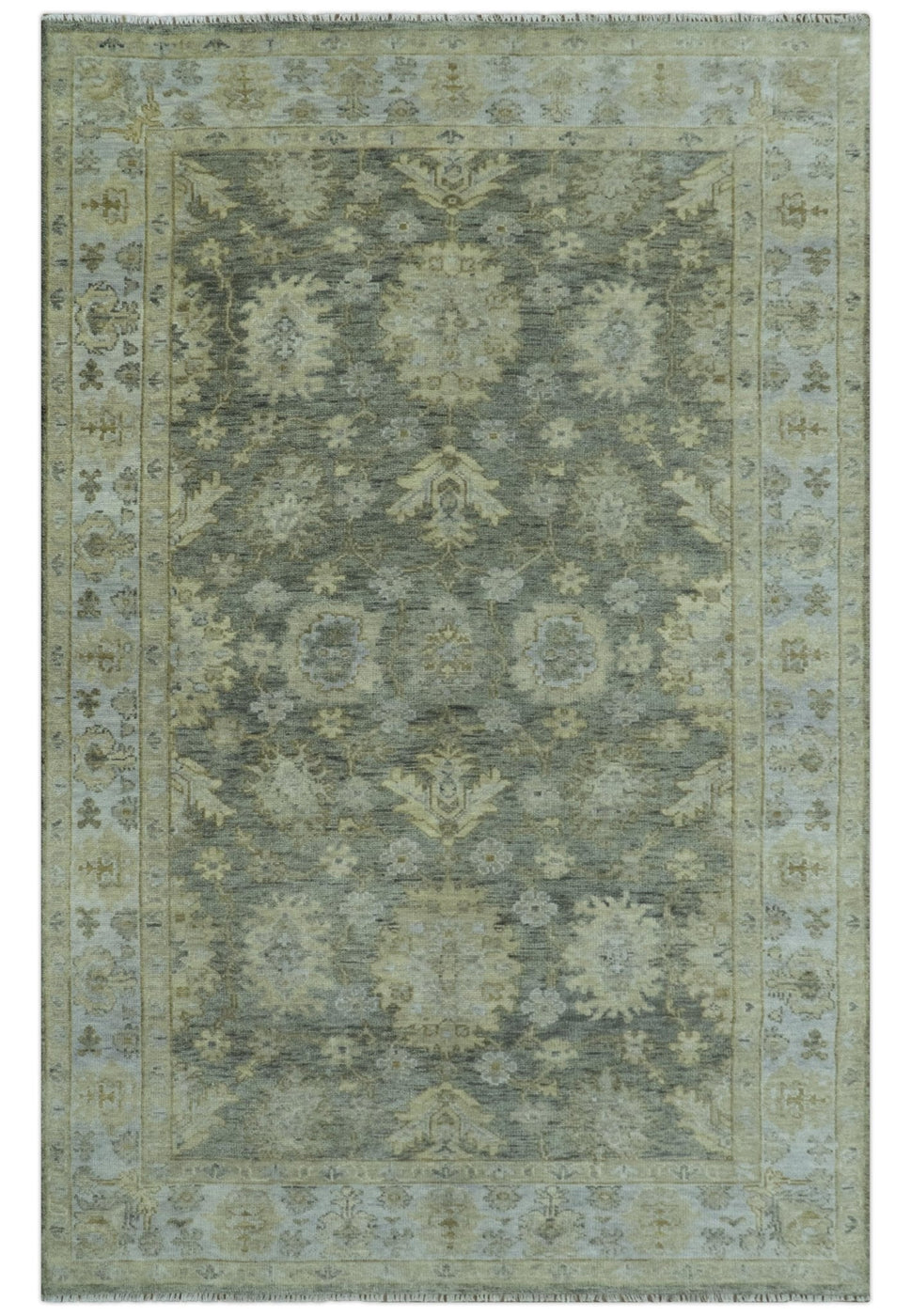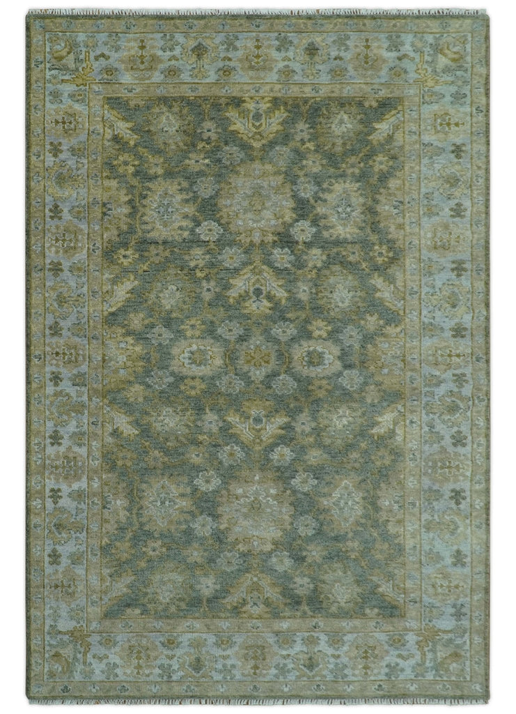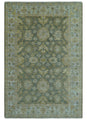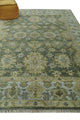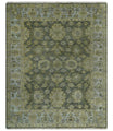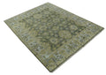 Custom Made Green, Silver and Olive Hand knotted Traditional Oushak Wool Area Rug