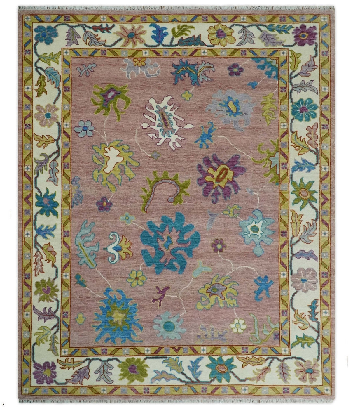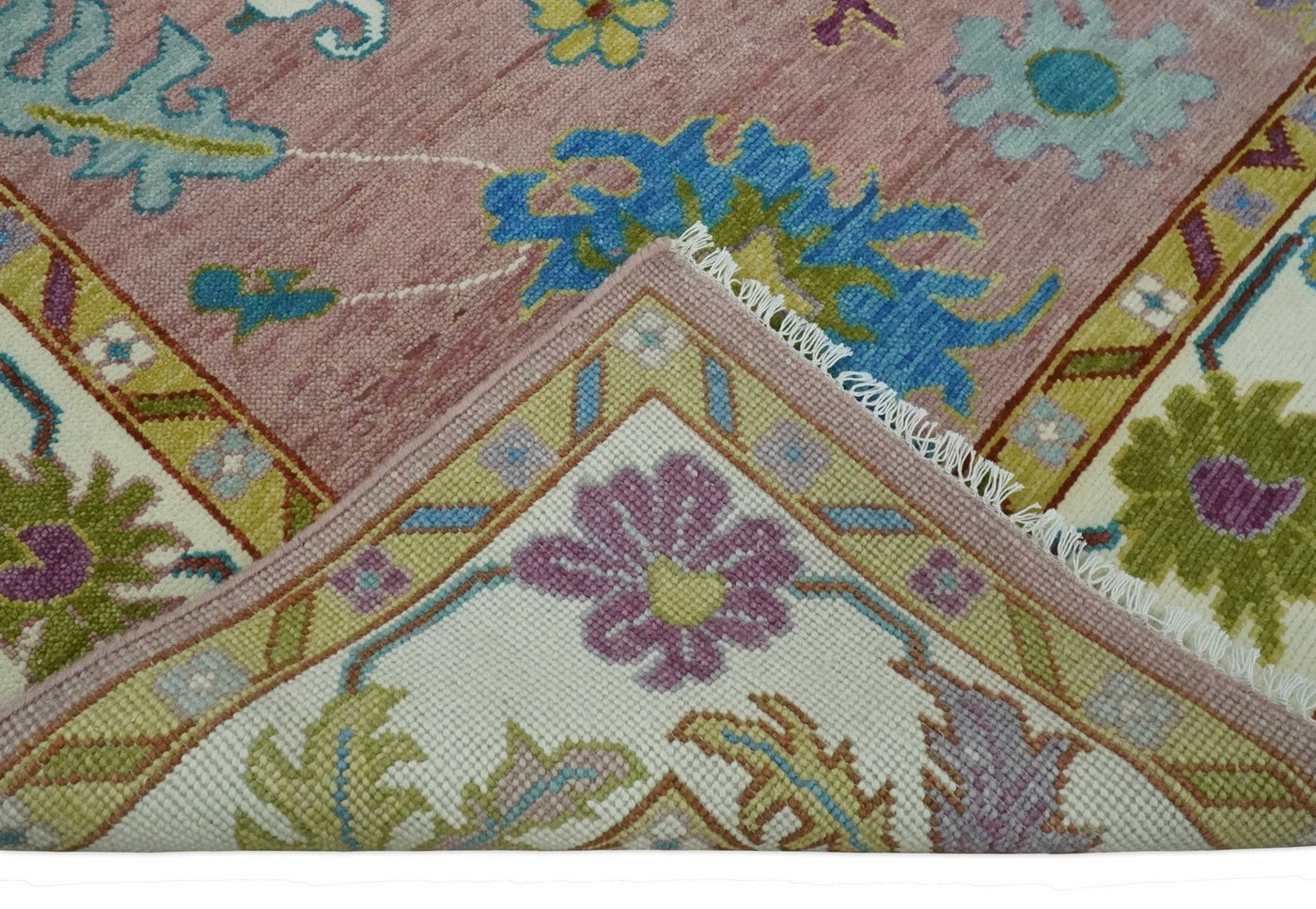 Custom Made Hand Knotted Pink and Ivory Colorful Oushak Rug