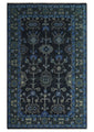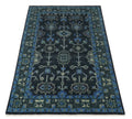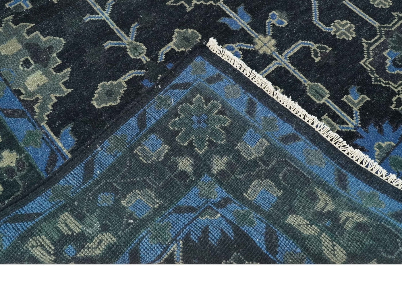 Dark Blue and Beige 5.6x8.6 Hand Knotted Traditional Oushak wool area rug