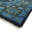 This 5.6x8.6 Hand-knotted Traditional Oushak wool area rug features a beautiful dark blue and beige color scheme. Hand-knotted with traditional techniques, this versatile rug is perfect for adding warmth and style to any room. Crafted from high-quality wool, it offers durability and comfort underfoot.
