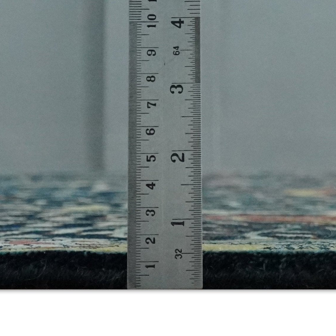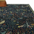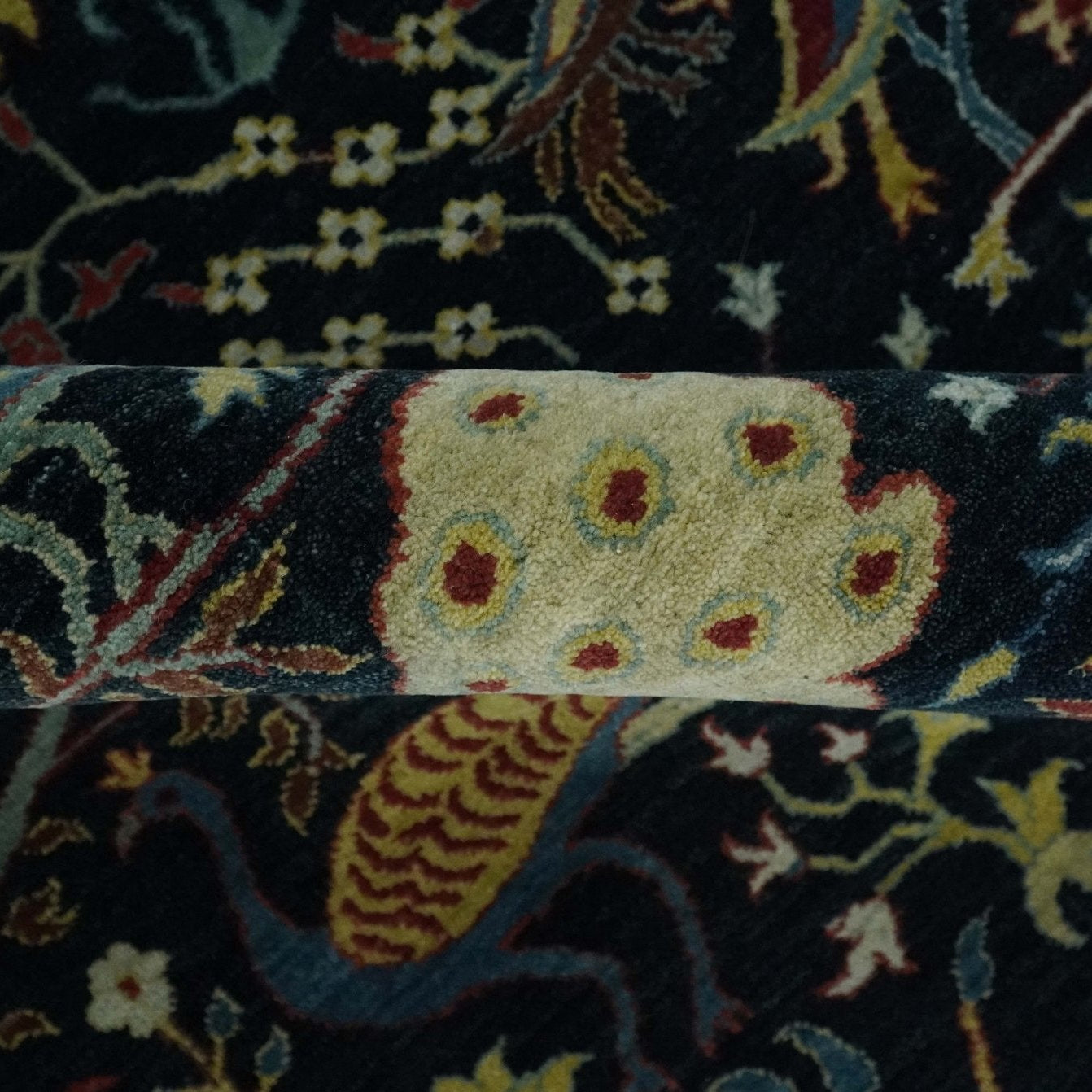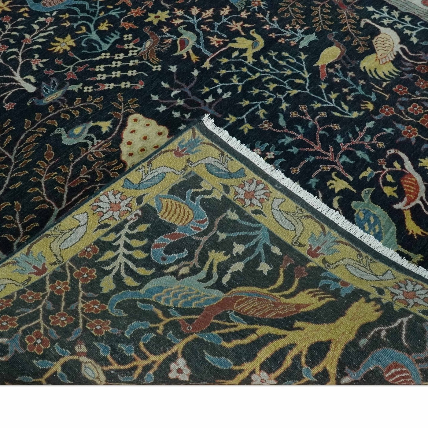 - Fine The Jungle Life Peacock on tree Rug 8x10, 9x12 Hand Knotted Black and Mustard Wool Rug