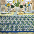 Hand block printed and crafted from cotton, this tablecloth offers both artistry and practical durability.