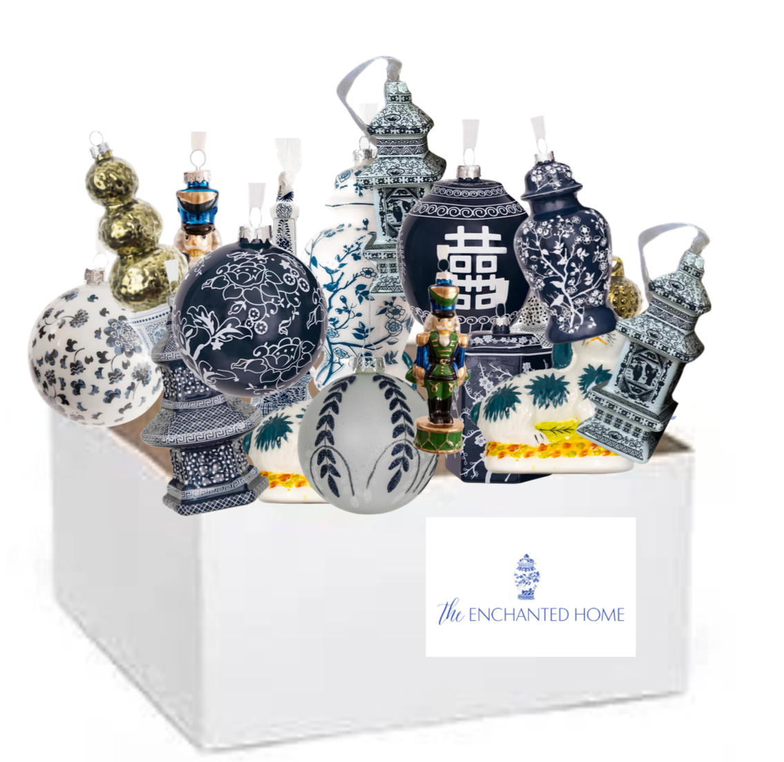 You will receive a pre selected grouping of varied ornaments from balls, Staffordshire dogs, toy soldiers, topiaries, ginger jars and more. Rest assured each and every one is beautiful and will beautifully enhance your tree! Ready to ship! This box has a value of $285 which makes these nearly half off!