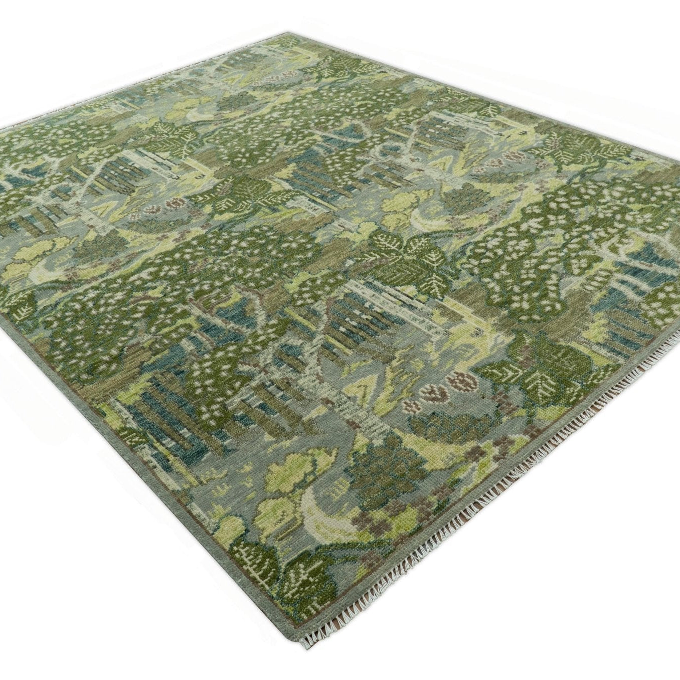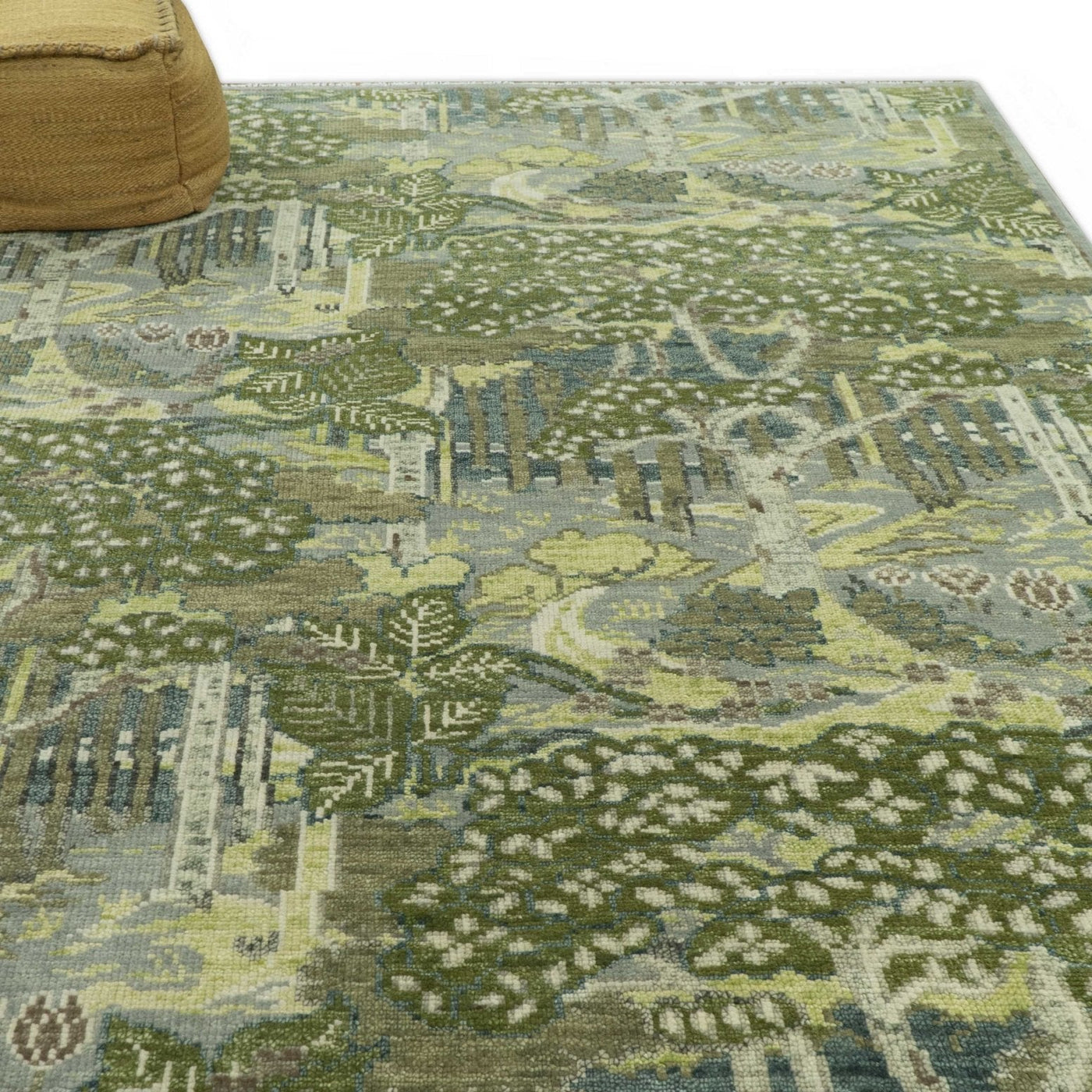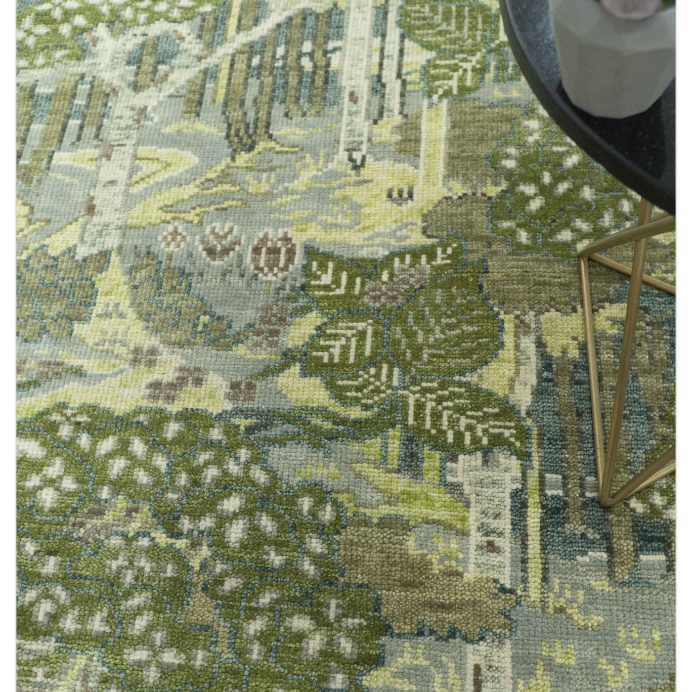 Green And Gray Nature Jungle Hand Knotted Custom Made wool area rug