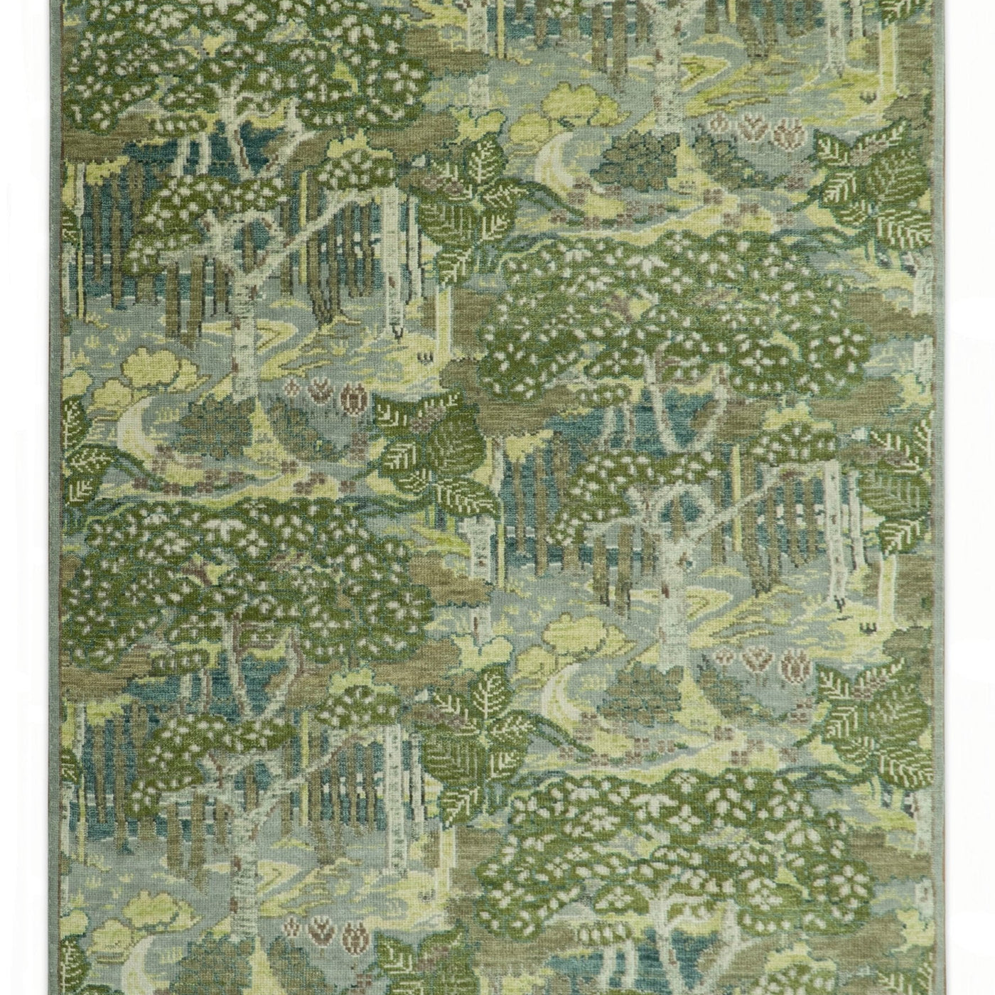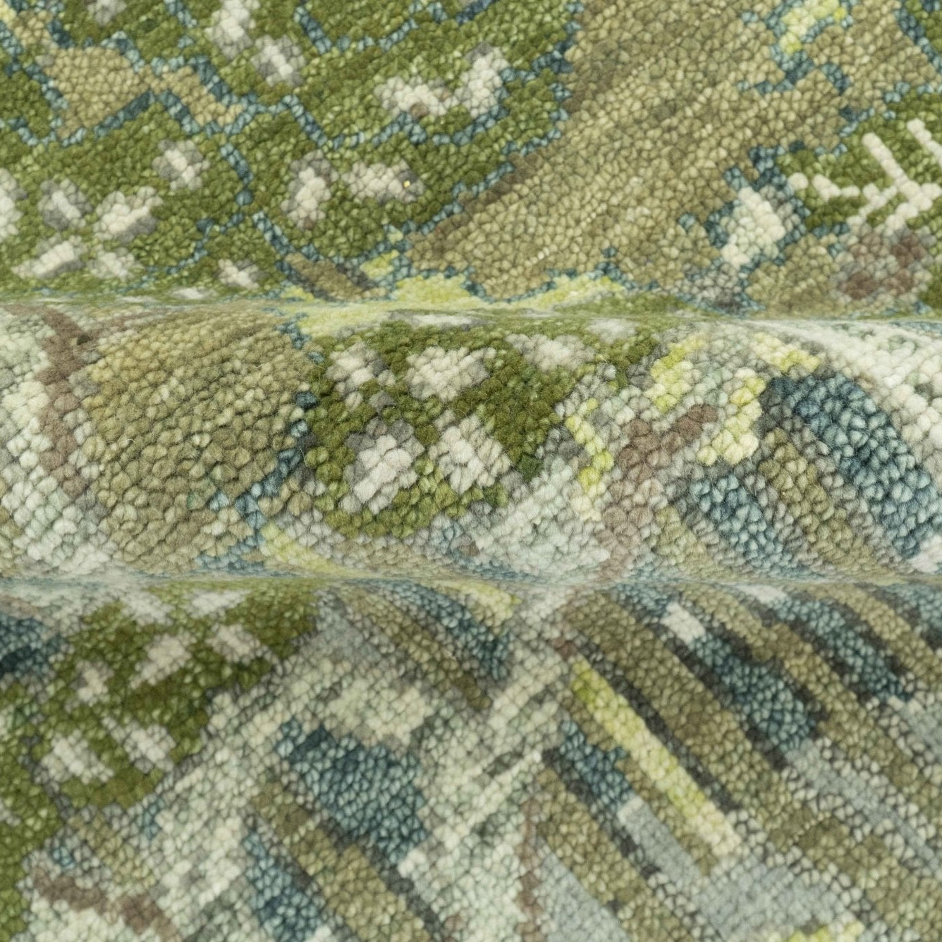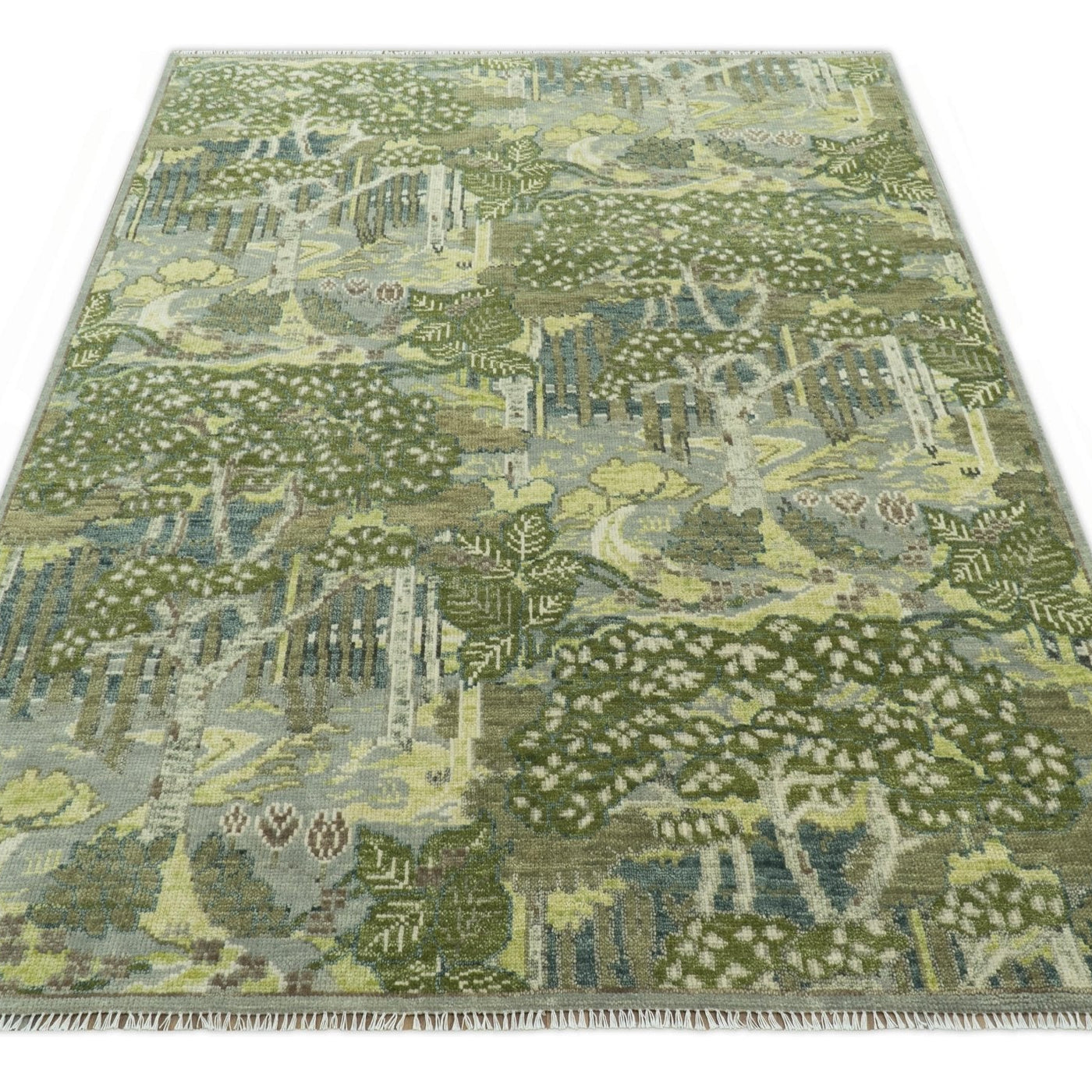 Green And Gray Nature Jungle Hand Knotted Custom Made wool area rug