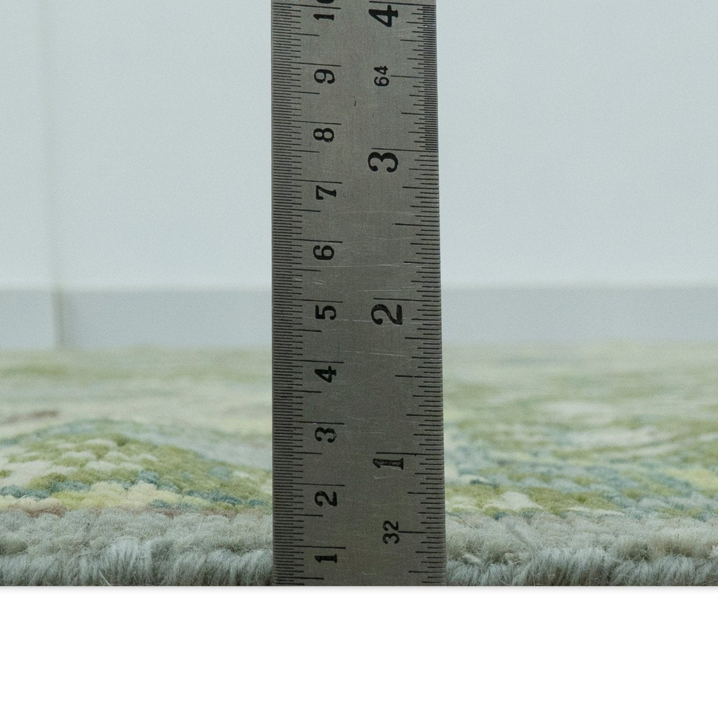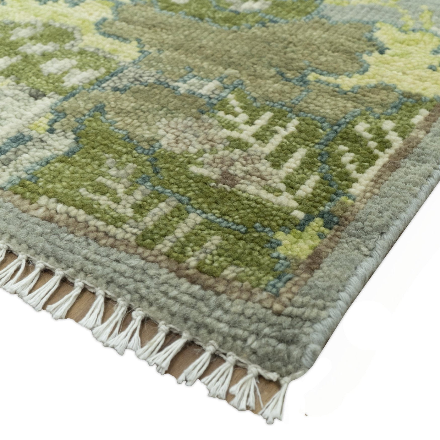 This hand knotted wool area rug features a beautiful nature with shades of green, yellow and gray. Crafted with care, this custom made rug adds a touch of luxury to any space. Made from premium quality wool, it offers both durability and softness underfoot. Transform your room with this stunning rug.