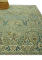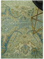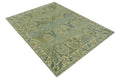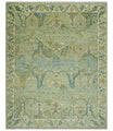 Hand Knotted Green, Olive and Teal Traditional Dragon Oushak Design 8x10 wool rug