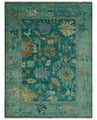 Hand Knotted Teal Traditional Oushak 9x12 wool area rug