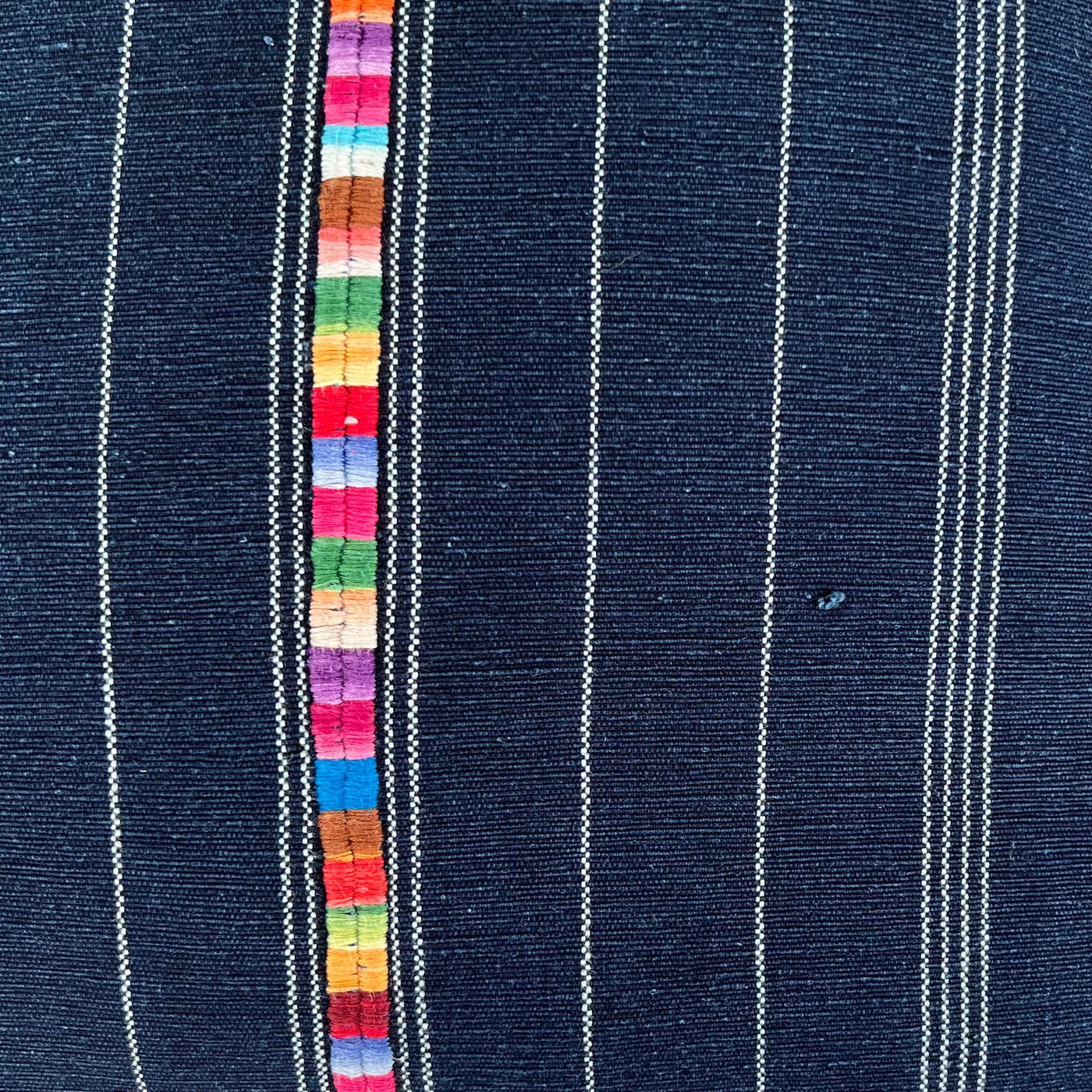 Add a touch of culture and sustainability to your home with Intertwined's handwoven vintage indigo pillow made from a traditional Mayan corte skirt. Embroidered accents and expert tailoring by Ruth & Naomi in Guatemala make this a unique and cheerful addition to your sofa or bed.