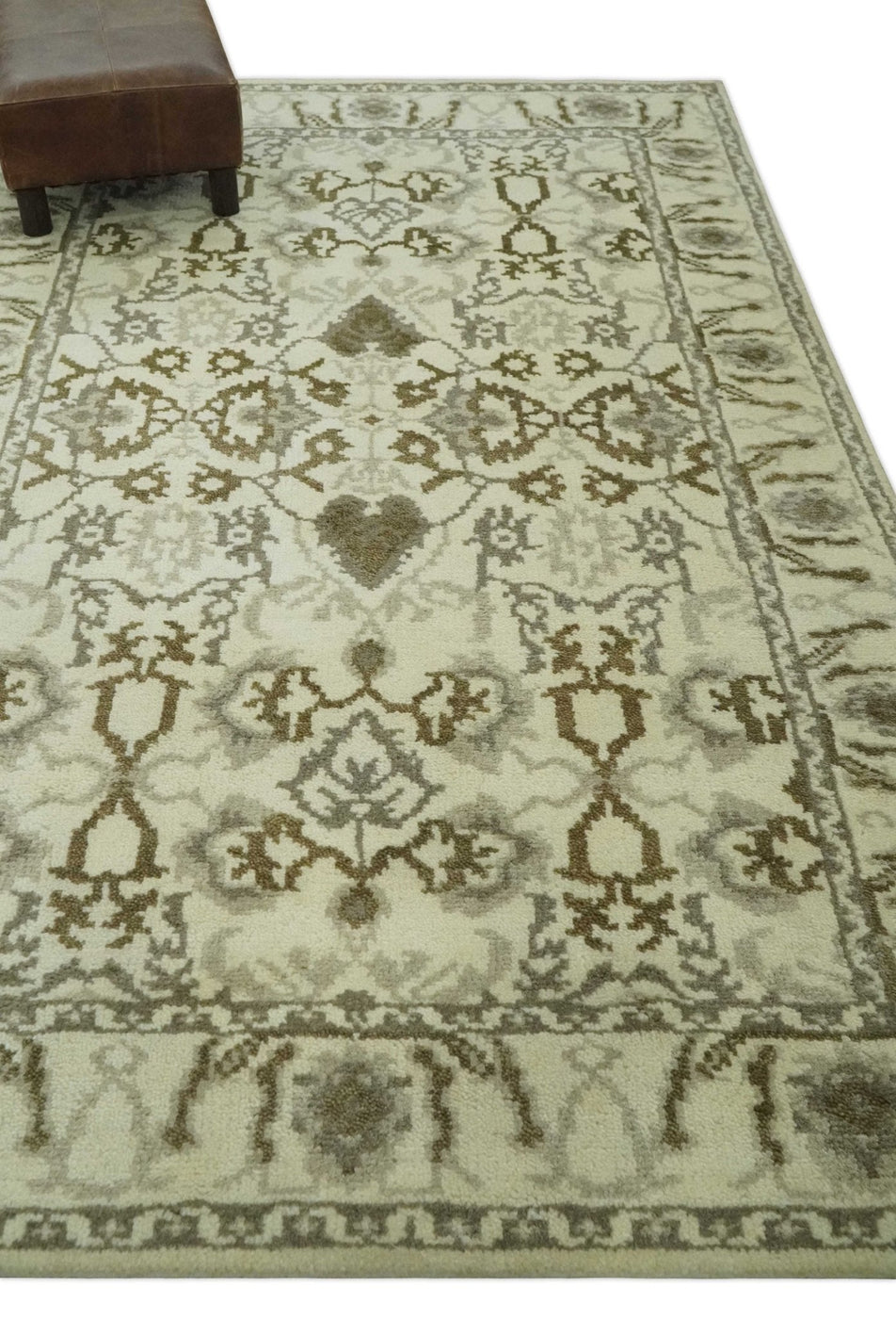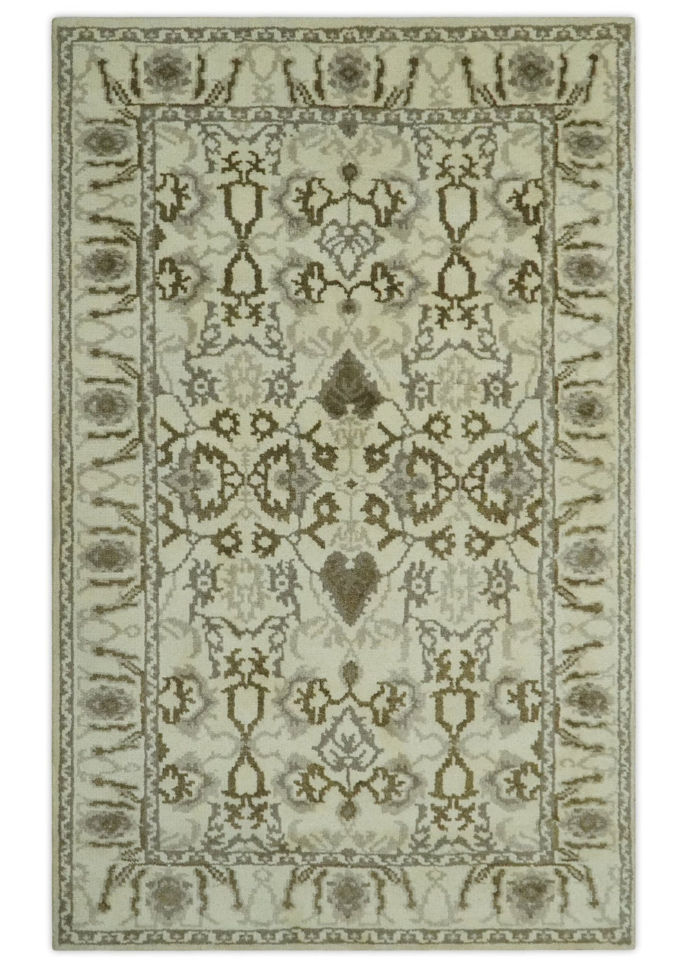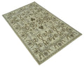Ivory, Olive and Gray Traditional Hand Knotted Oriental Oushak 5x8 wool Area Rug