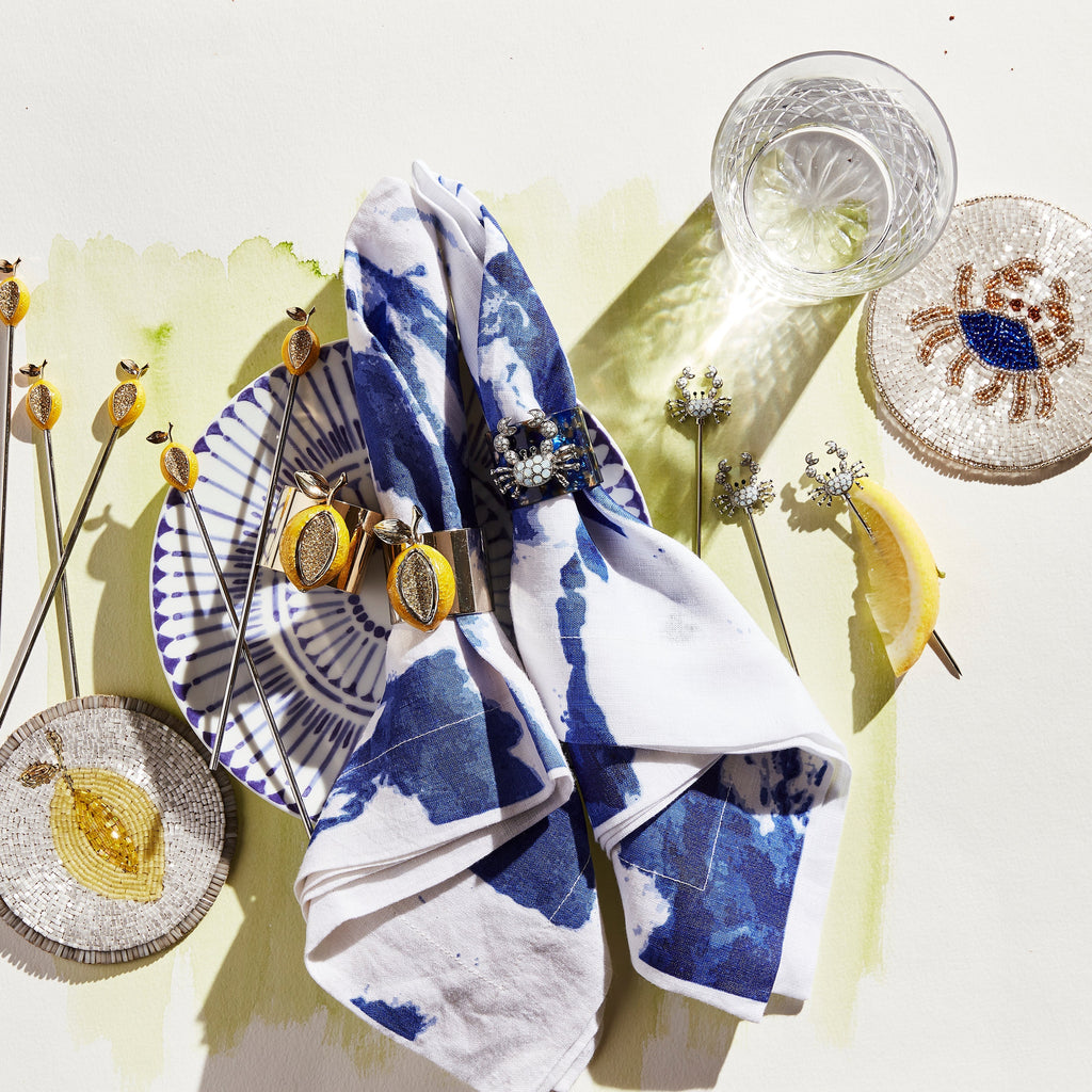 Lemons are my new favorite fruits...so bright, fresh and happy despite their sour nature! Imagine this stunning swizzle stick in your freshly made lemonade! How divine! And if that lemonade is laced with a little something stronger... well then, even better! Pair these with our lemon coasters and napkin rings for a super fresh brunch setting! Cheers!