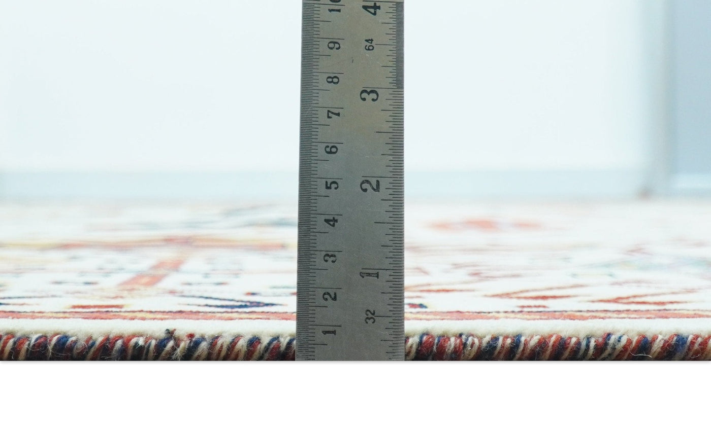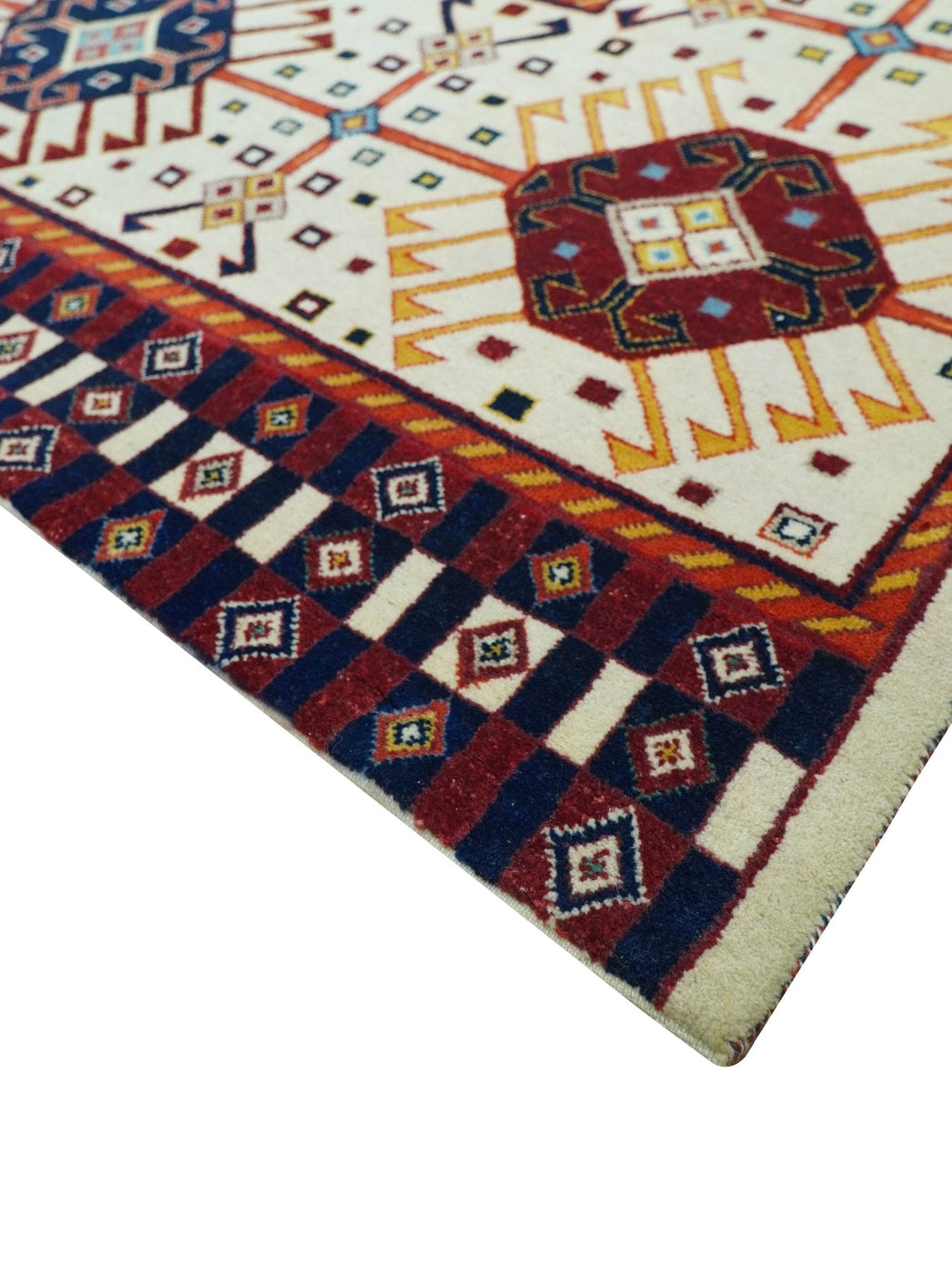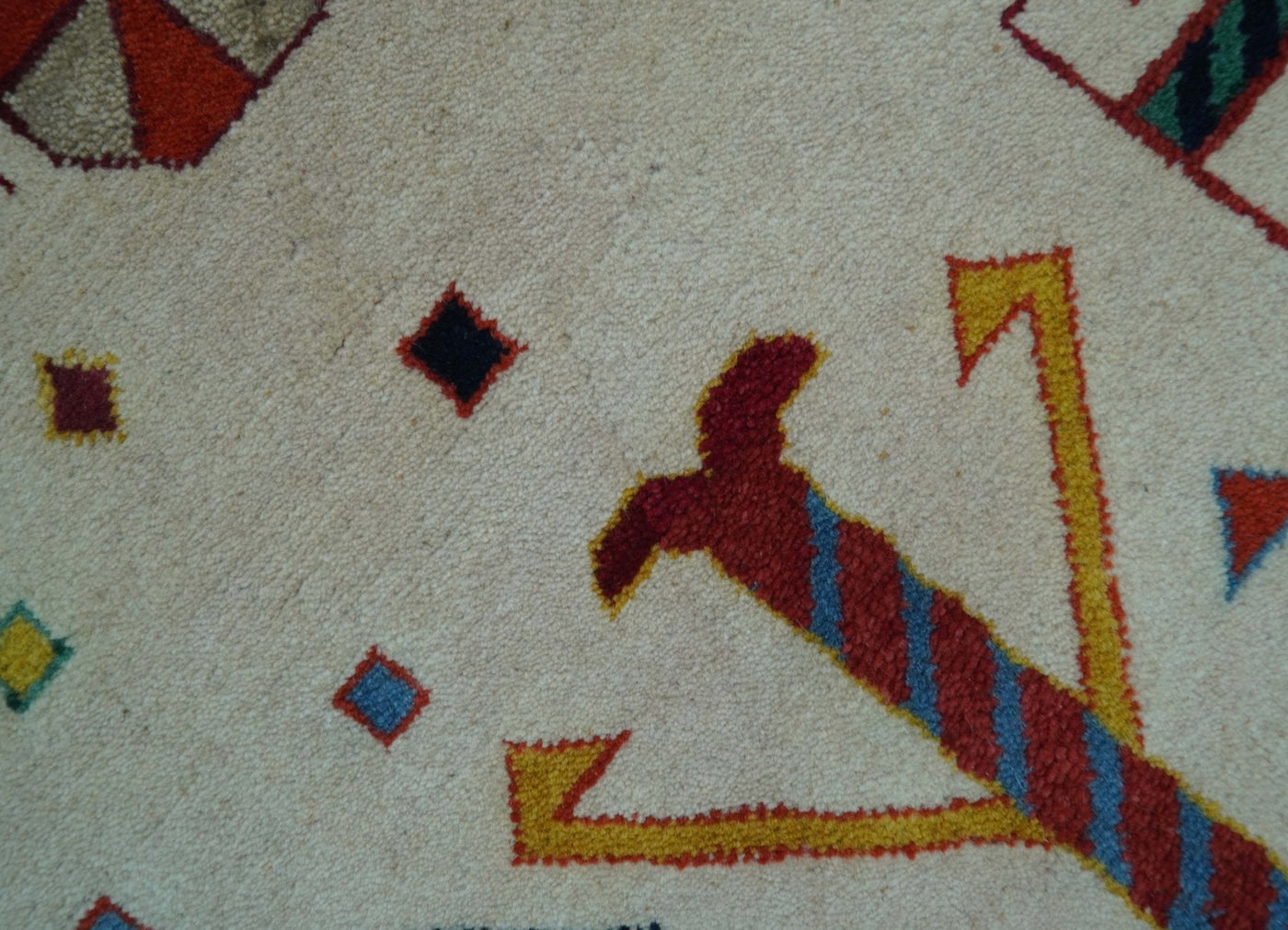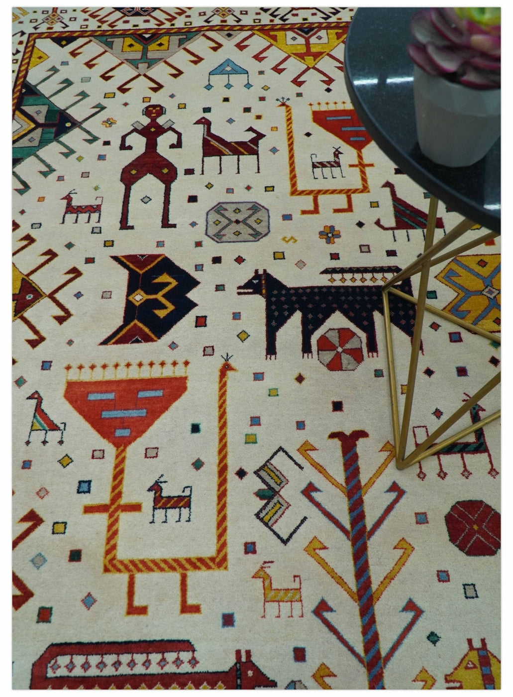 The Lori Gabbeh Design Ivory Area Rug, measuring 8 by 11.7 feet, is a hand-knotted wool rug showcasing traditional Gabbeh motifs on a soft ivory background. Crafted from high-quality wool, it offers exceptional durability and comfort, making it an elegant and lasting addition to sophisticated living spaces.