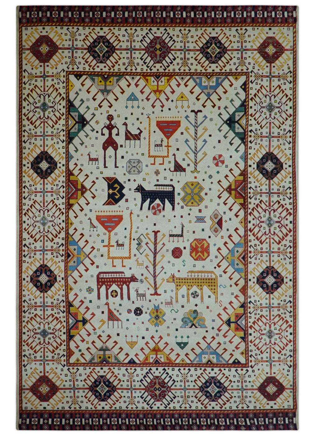 Lori Gabbeh Design Ivory 8x11.7 Hand Knotted wool Area Rug