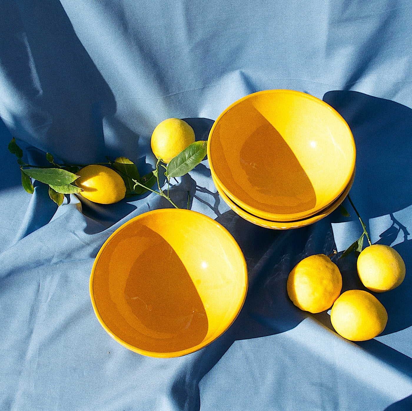 Medium bowl in sunny yellow, perfect for salads, ramen, pasta, popcorn chips or a large bowl of fruit.