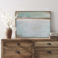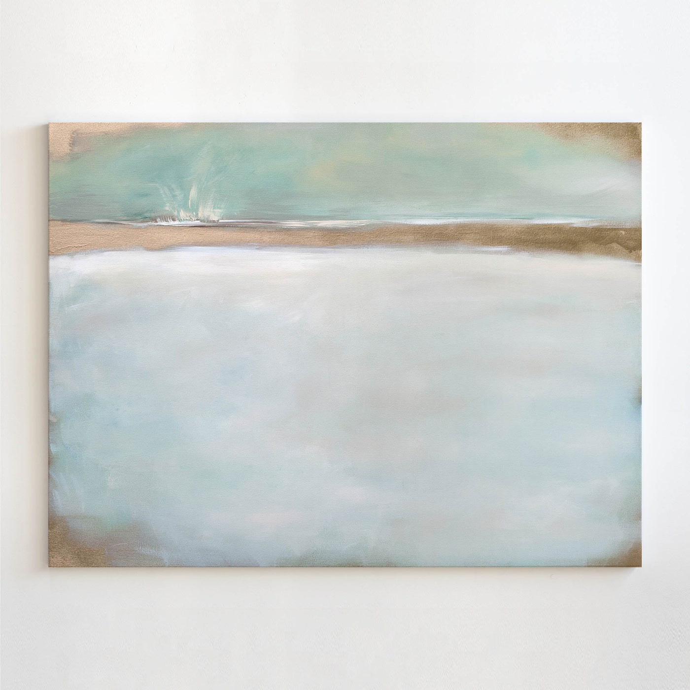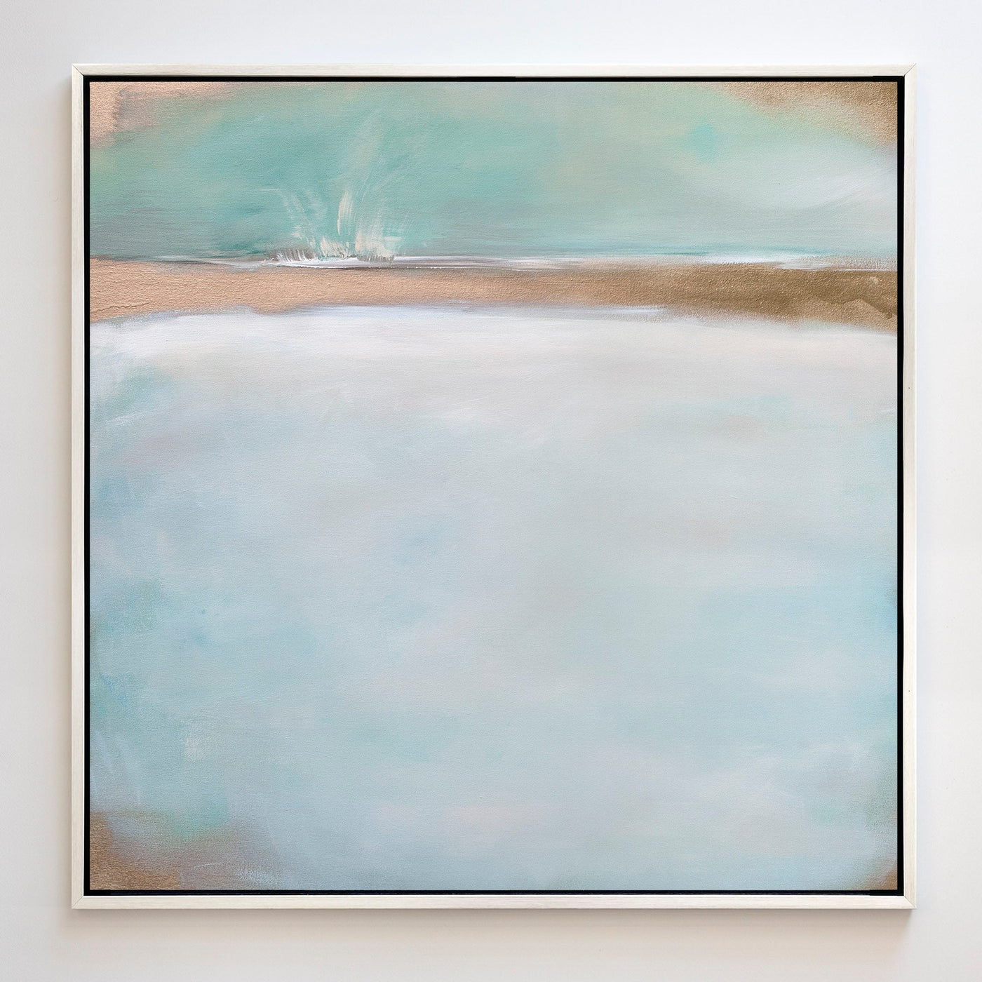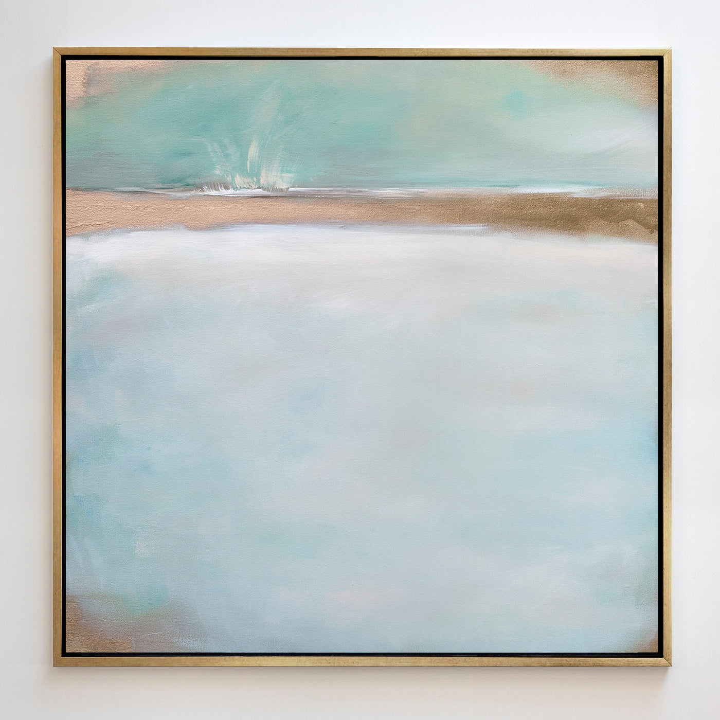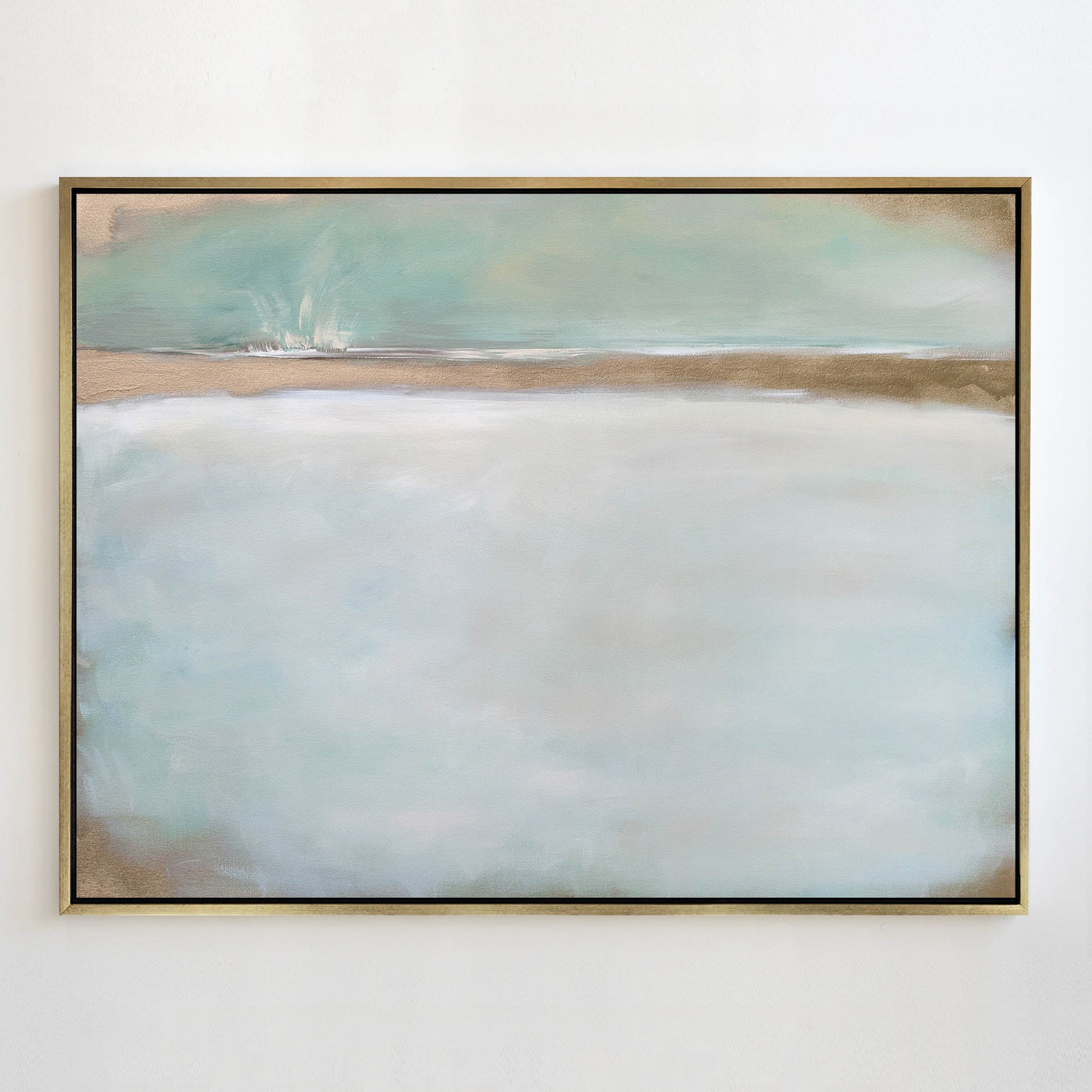 A calming landscape, just abstracted enough that it can take you away to your favorite place. Perhaps a distant town or welcoming escape, whatever the case this work transports your soul to nostalgic times. This very neutral palette is layered with subtle undertones of sage as well as hints of teal.