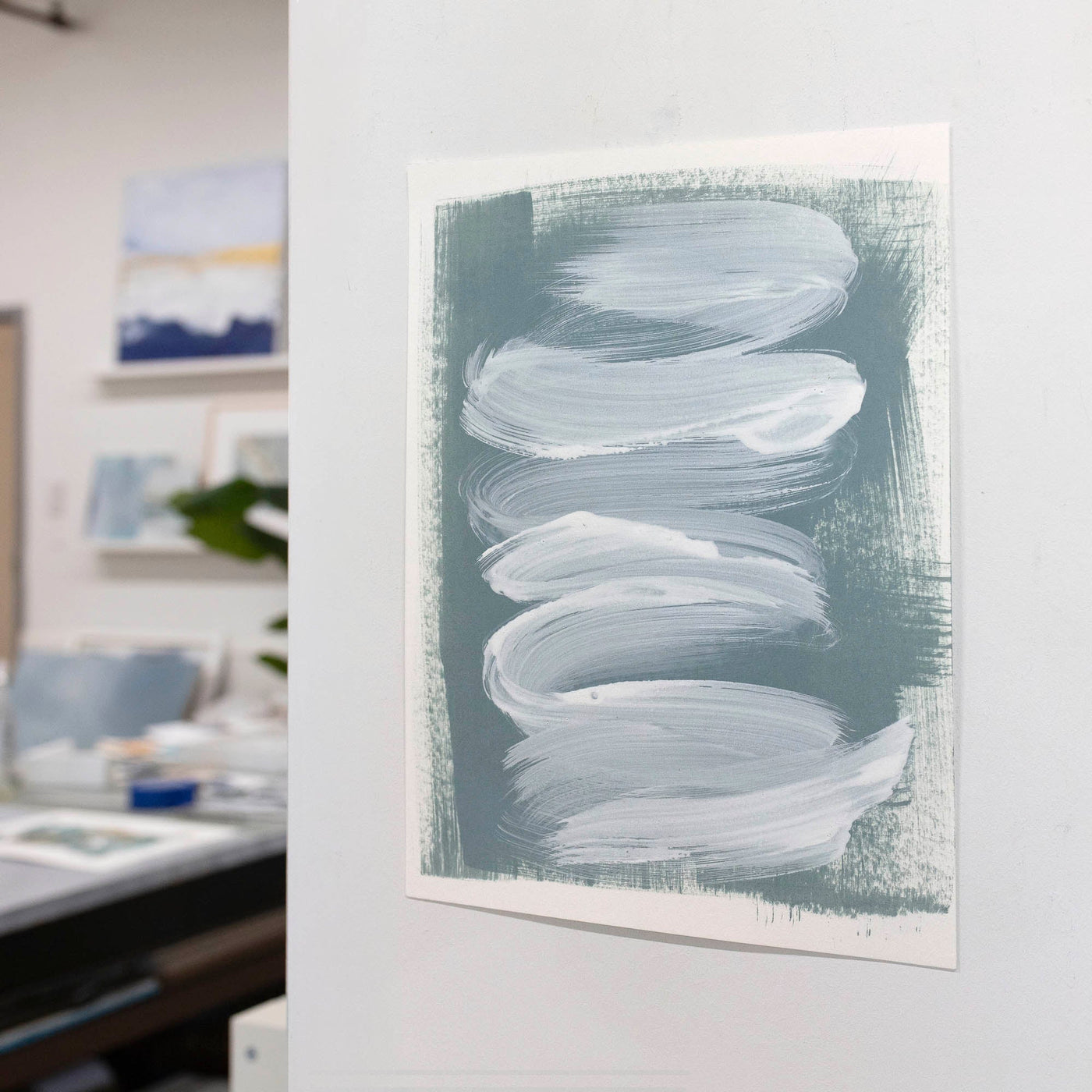 This original painting is created with a natural teal tone and white acrylic paint on 140 lb Strathmore warm white acid-free paper. It’s signed on the back and can be signed on the lower right corner if requested.