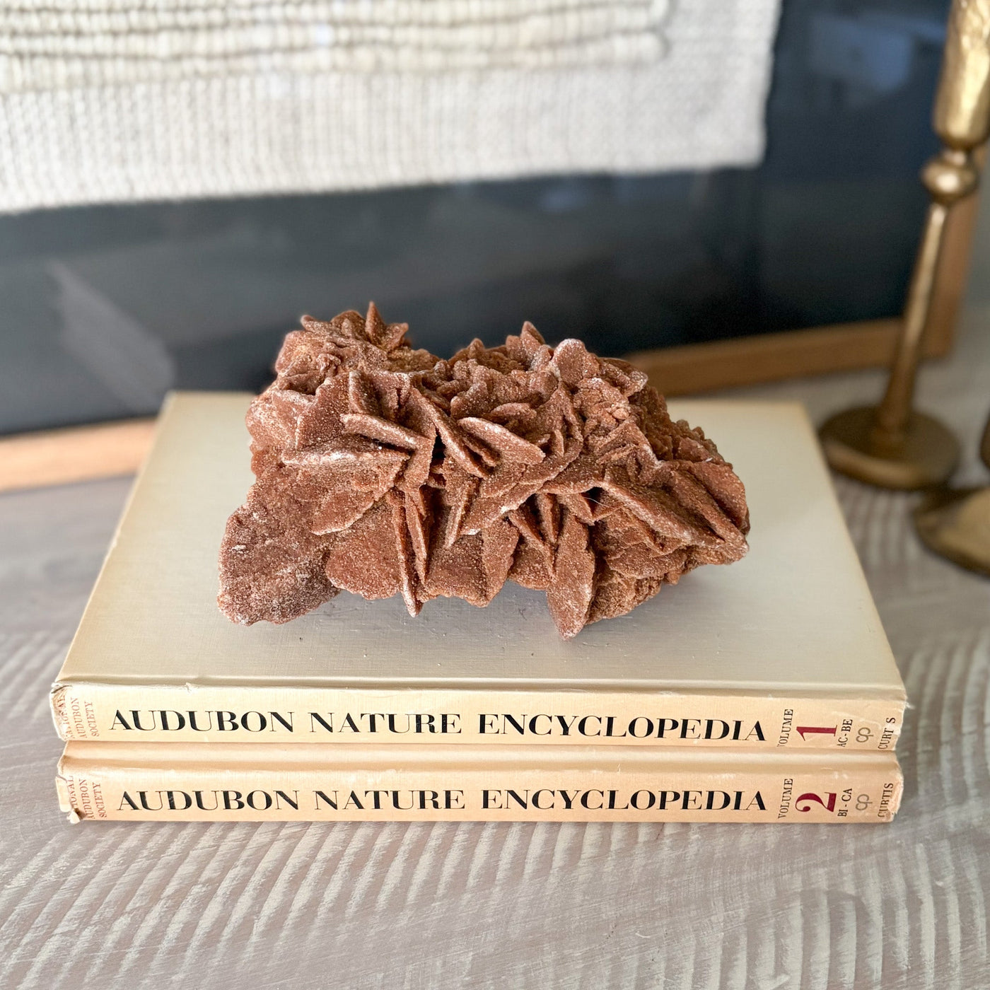 Desert Rose Selenite, also known as Gypsum Rose or Sand Rose, is a type of Selenite formed from a combination of water, wind, and sand. Sand becomes embedded in Selenite blades, while additions of water overtime help form the signature “rosette” formation. Desert Rose Selenite is commonly found in deserts around the world in countries including Mexico, Morocco, Saudi Arabia, Australia, Tunisia, and Afghanistan. There is also a unique type of desert rose or rose rock found only in Oklahoma. These specimens vary in color based on the sand as well as other minerals present in the rock in which it forms.