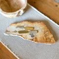 Our Natural Edge Petrified Wood Serving Board is perfect for displaying your culinary creations. Crafted from Indonesian petrified wood, this gorgeous piece adds a rustic touch to any kitchen. Its naturally unique surface is a perfect backdrop for your favorite charcuterie.