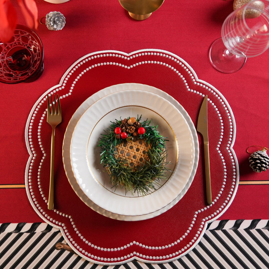 NURTURE RED SCALLOPED FAUX LEATHER PLACEMAT