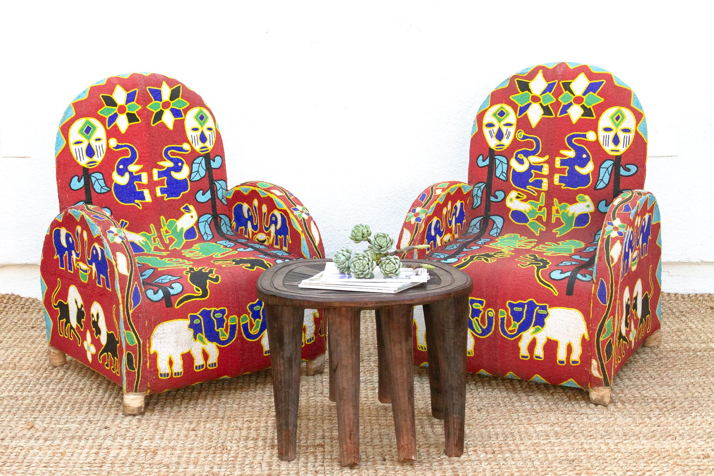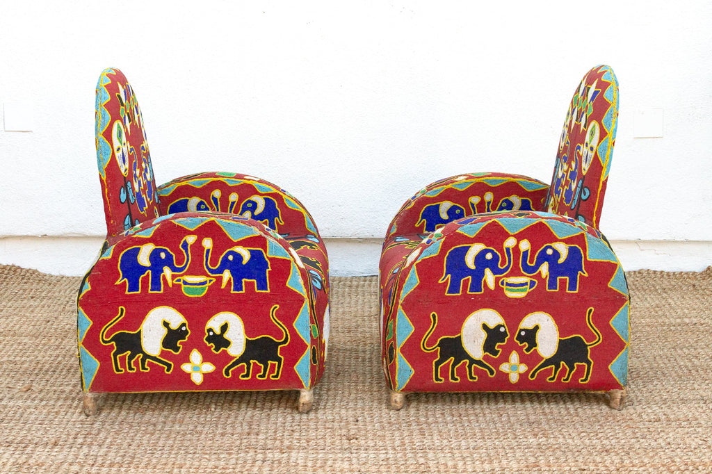 Pair of Yoruba African Beaded Chairs