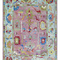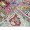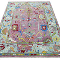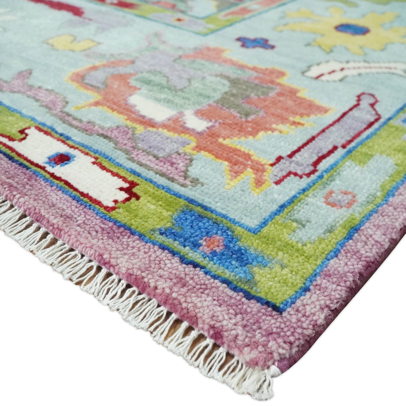 Pink Modern Oushak Rug Wool Blue Colorful Hand knotted Area Rug