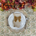 Embrace the golden spirit of the season with our wheat-colored gingham Bettina Placemats, elegantly finished with wavy scalloped embroidery. They bring an inviting warmth to the table—perfect for autumn gatherings.